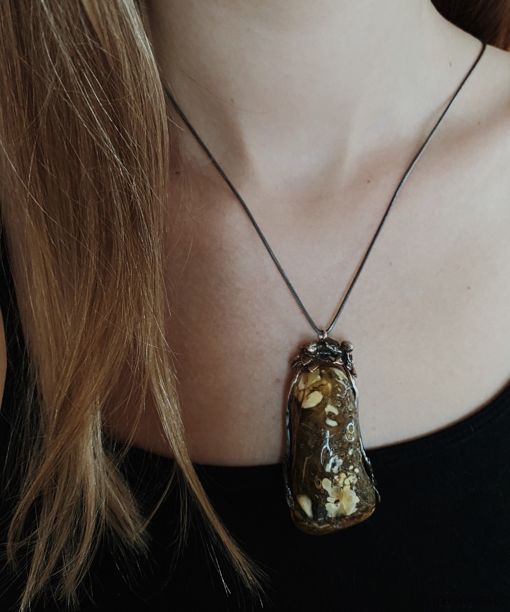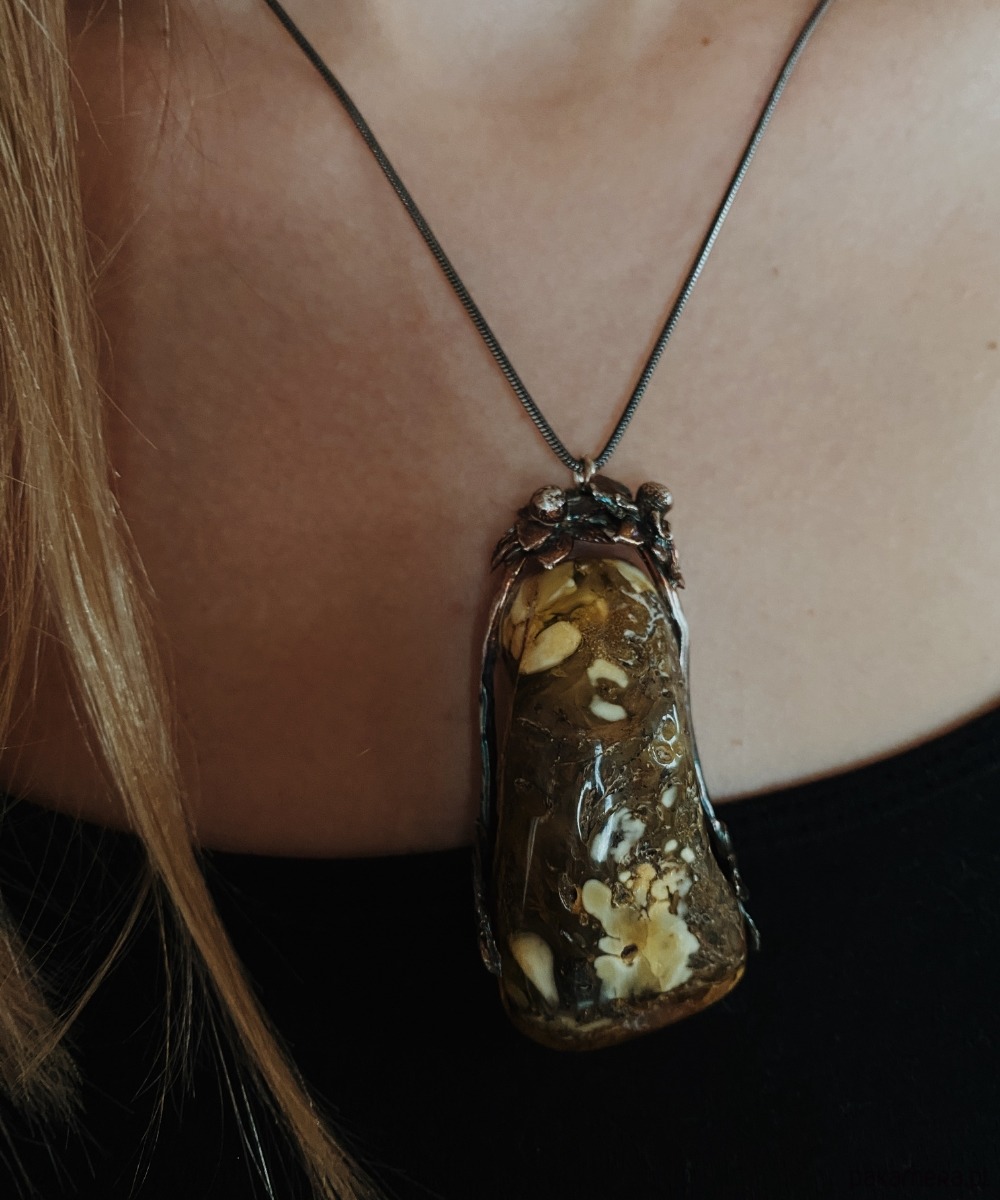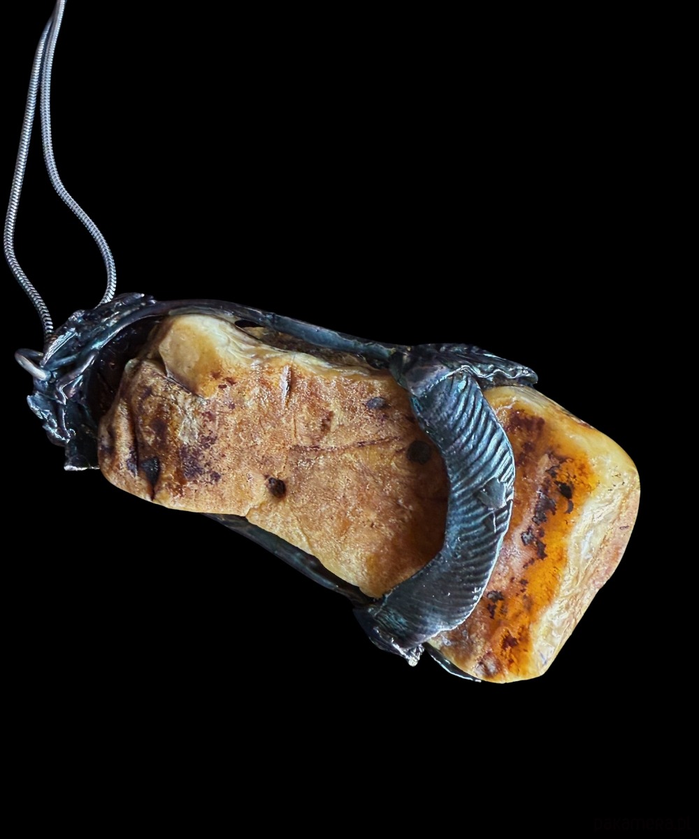 A pendant made of the highest quality Art Clay Silver 999 with amber.