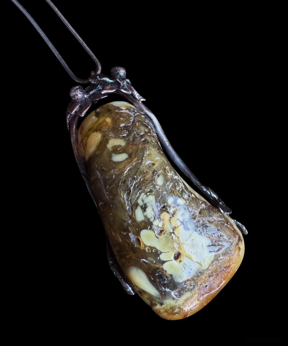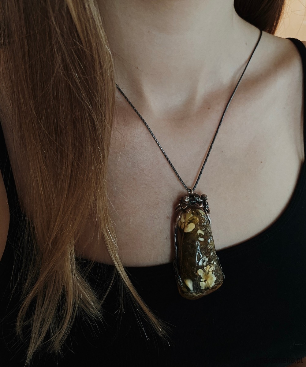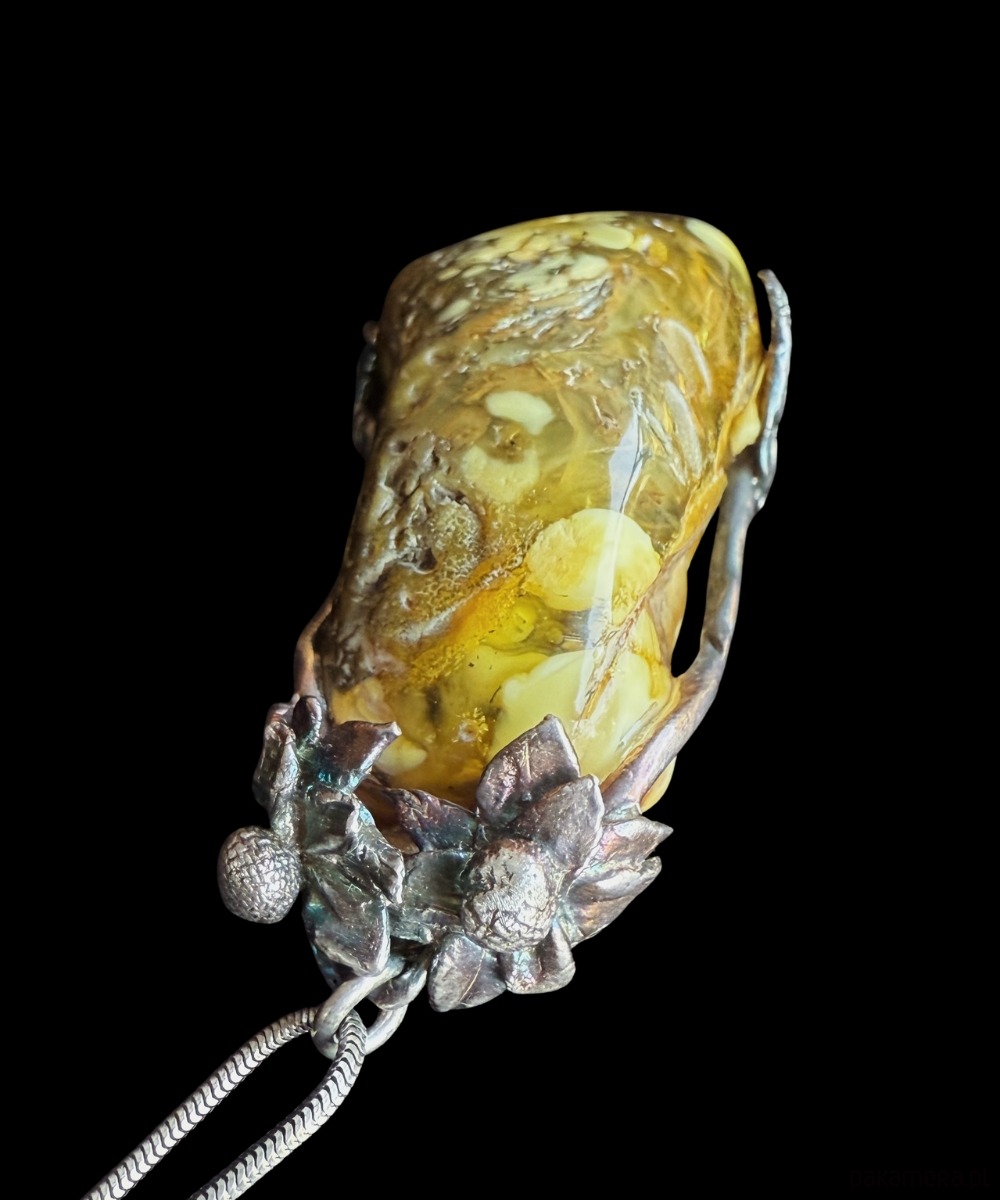 A pendant made of the highest quality Art Clay Silver 999 with amber.