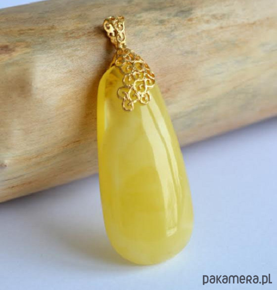 Wisior bursztynowy w kolorze żółtym.
