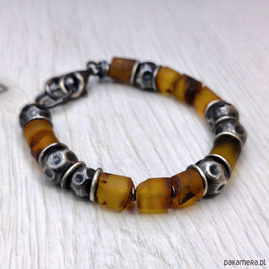 Srebro pr.925 fakturowane, kute, oksydowane, przetarte.