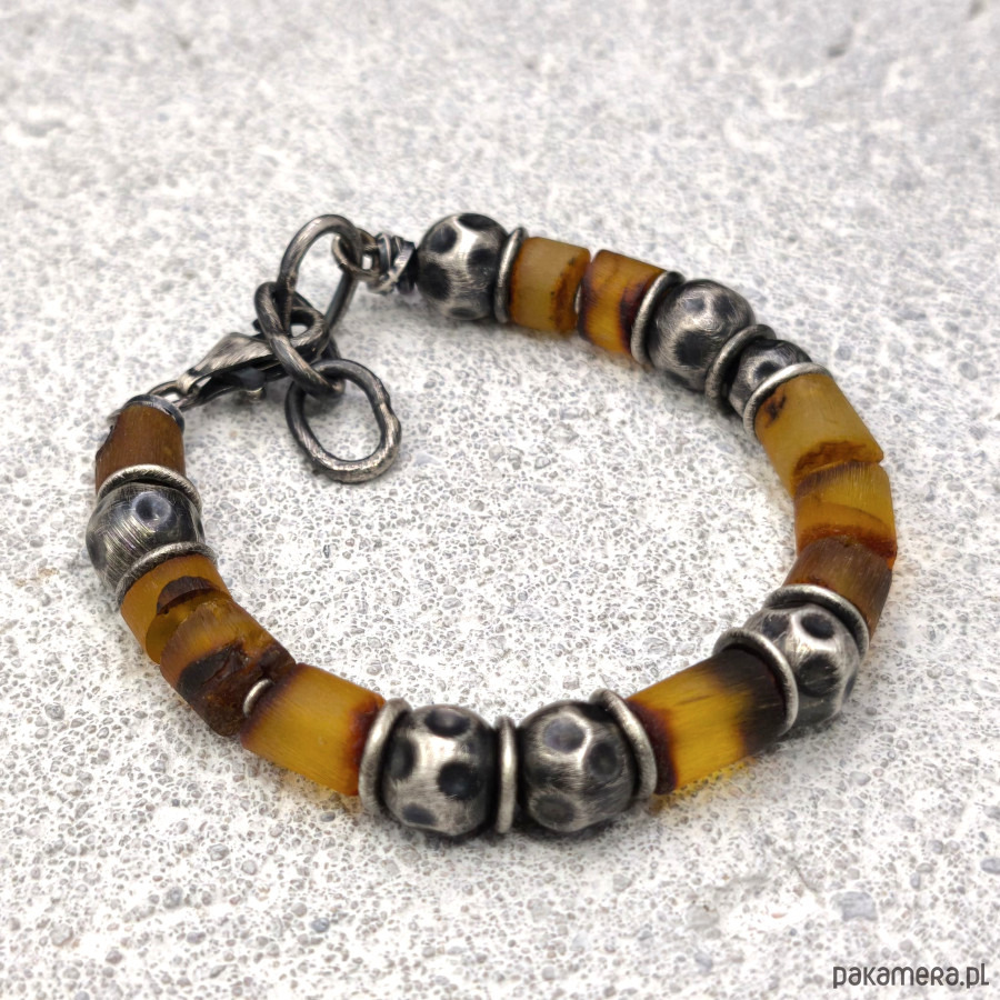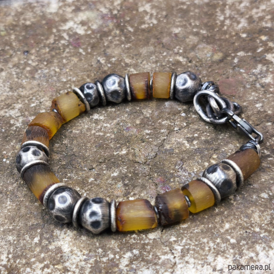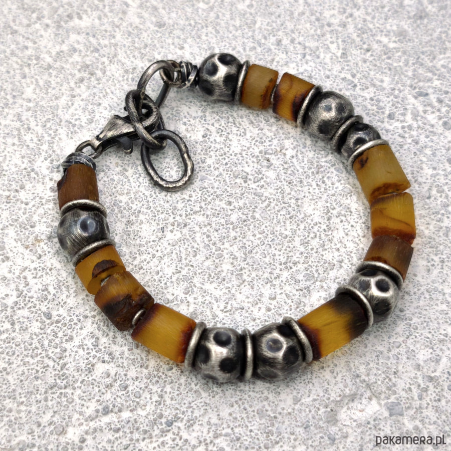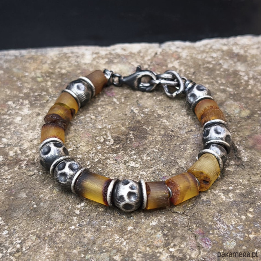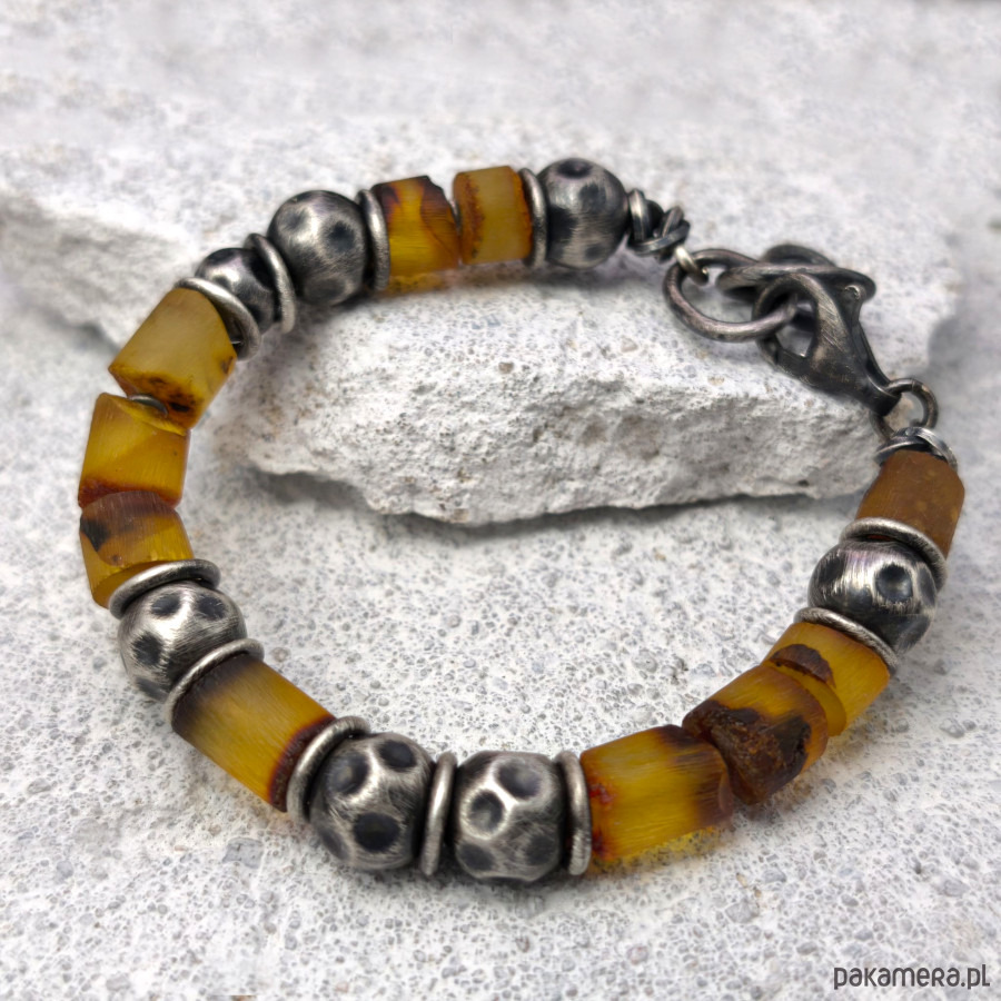 Bransoleta uniseks - srebro i bursztyny.
