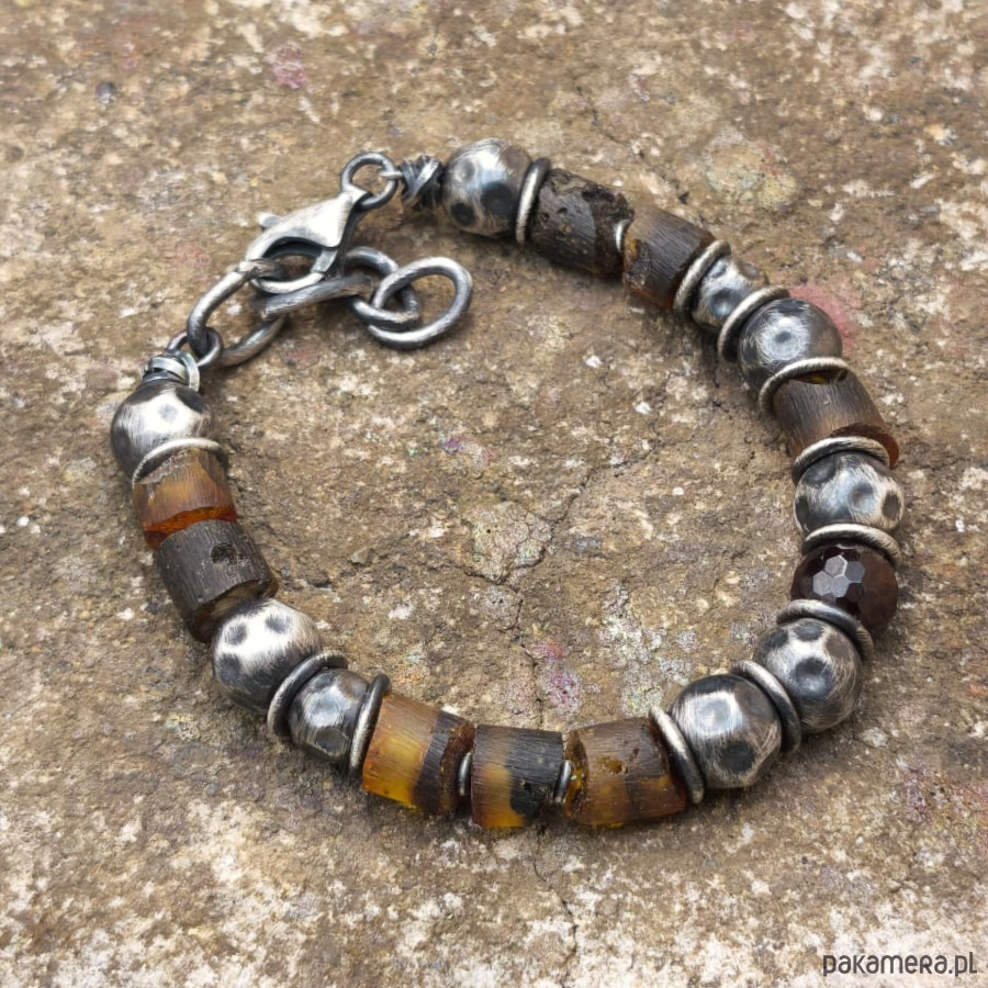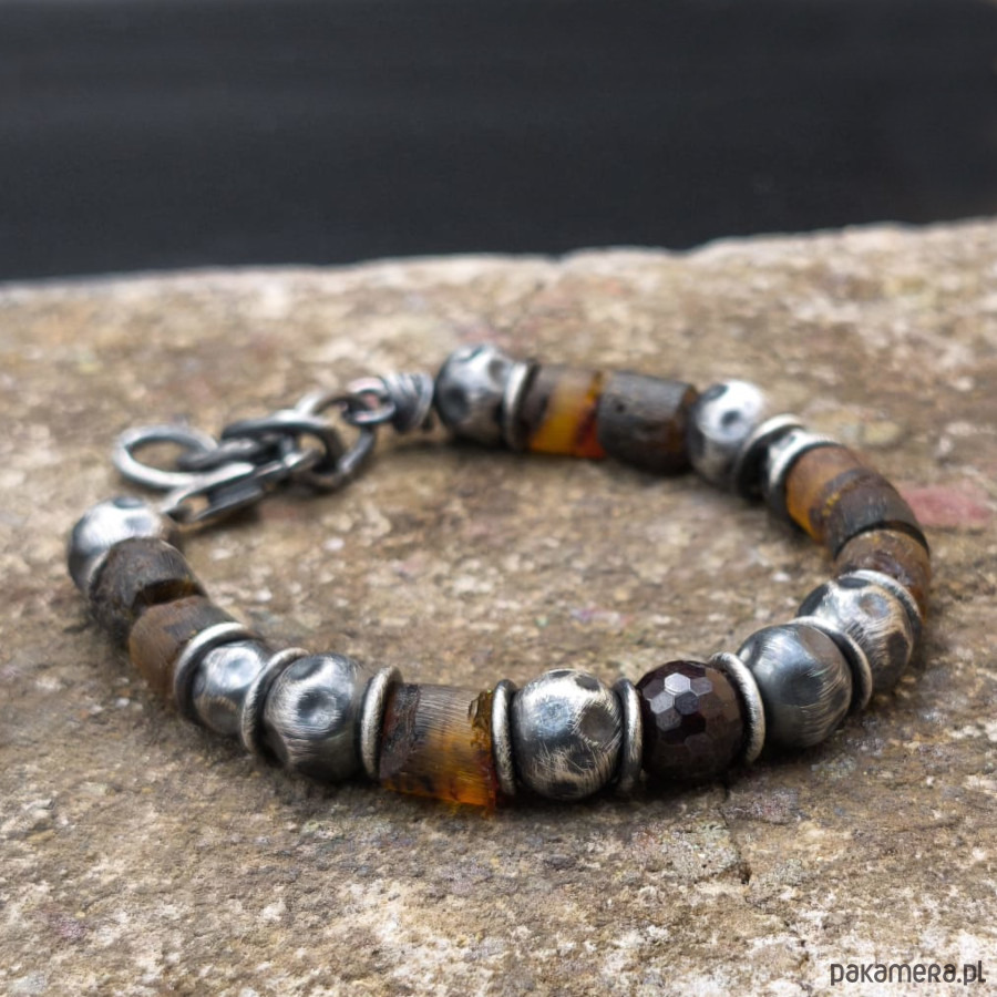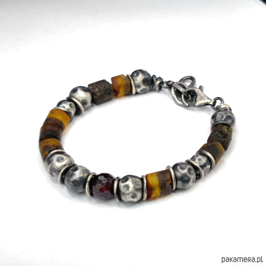 Bursztyny i granat - bransoleta męska
