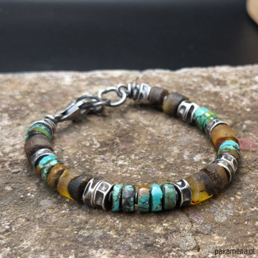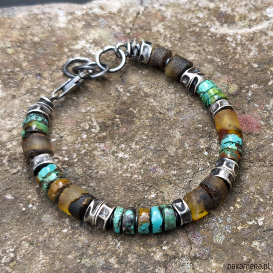 Srebro pr.925 fakturowane, kute, oksydowane, przetarte.