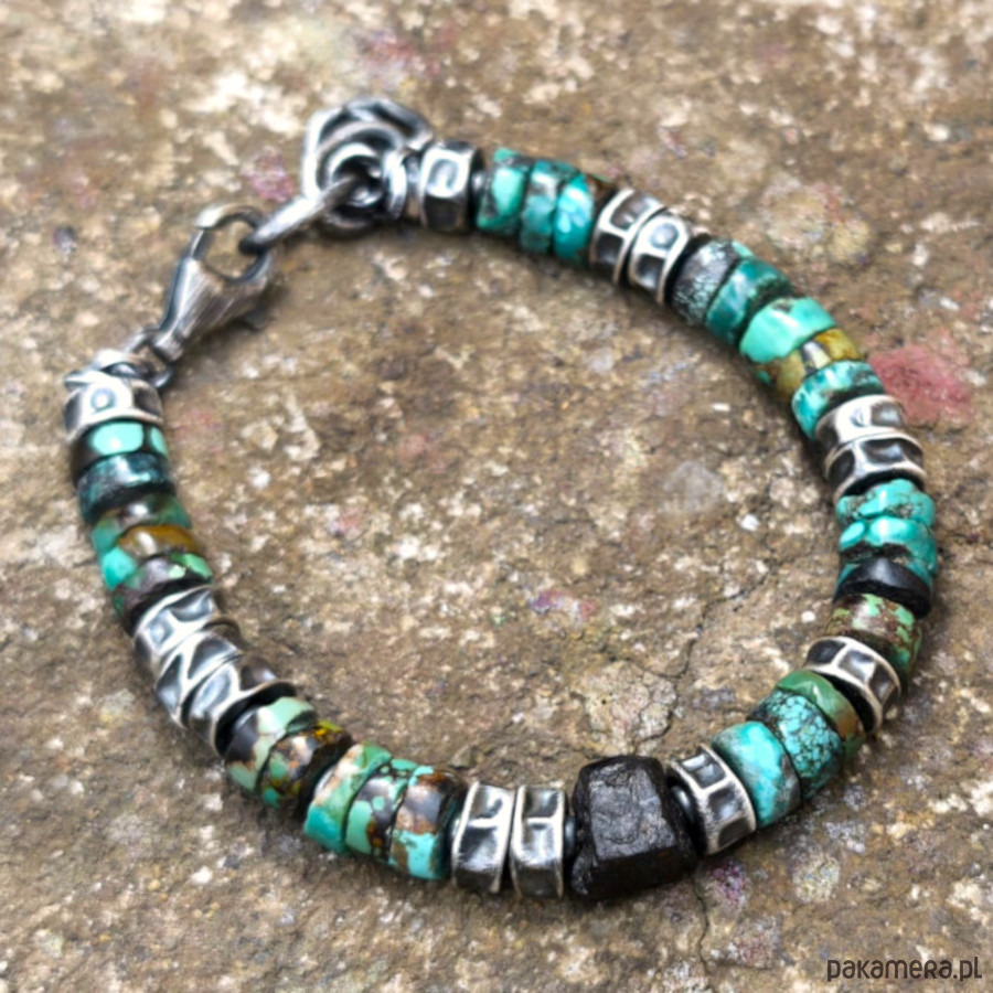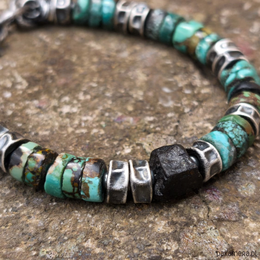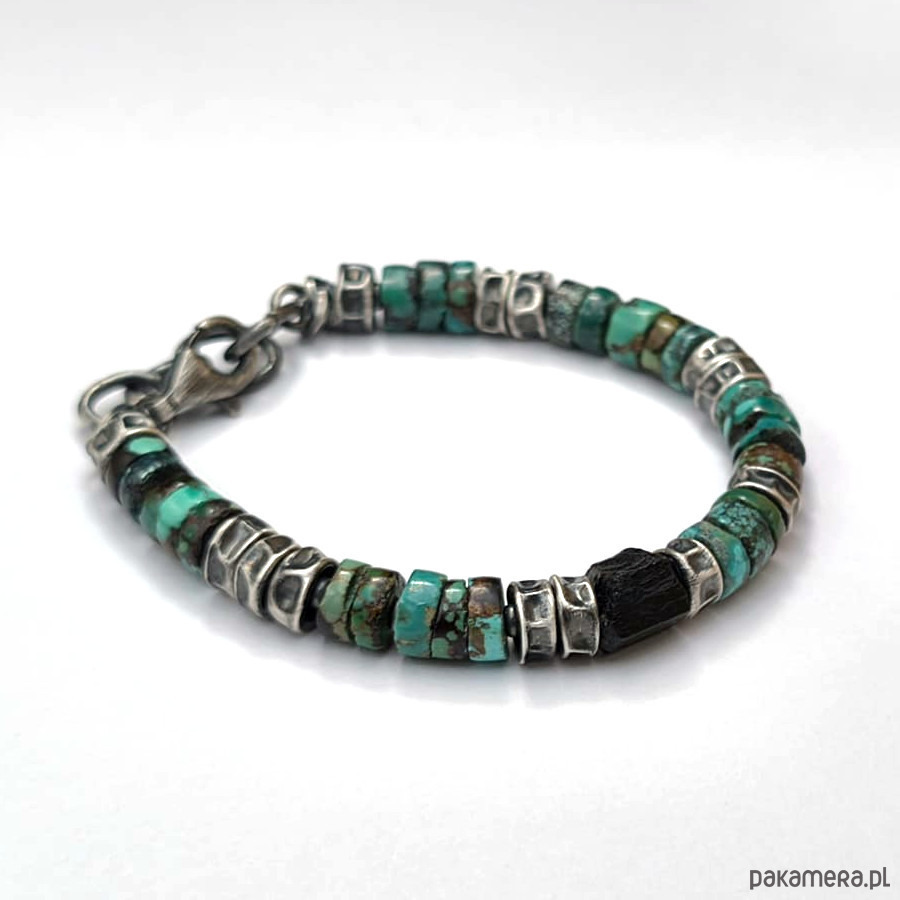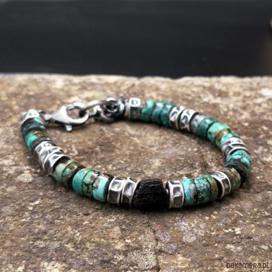 Turkusy i czarny turmalin - bransoleta męska