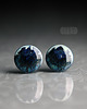 Ceramiczne okrągłe kolczyki, ręcznie wykonane z delikatnej gliny kamionkowej, jednostronnie szkliwione granatowo błękitnym szkliwem z efektem plamek, na antyalergicznych sztyftach. Średnica ok. 11mm. Polecam