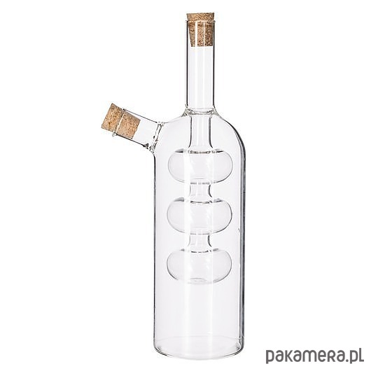 Butelka na przyprawy typu ocet winny i oliwa, która umożliwia zmieścić obie przyprawy w jednym naczyniu. Karafka jest wykonana z przezroczystego szkła i zawiera w sobie dodatkowe naczynie. Obie części mają osobne ujścia zamknięte korkiem, który uniemożliwia wietrzenie produktów. Pomysłowy dozownik będzie ciekawym gadżetem w kuchni i na stole.