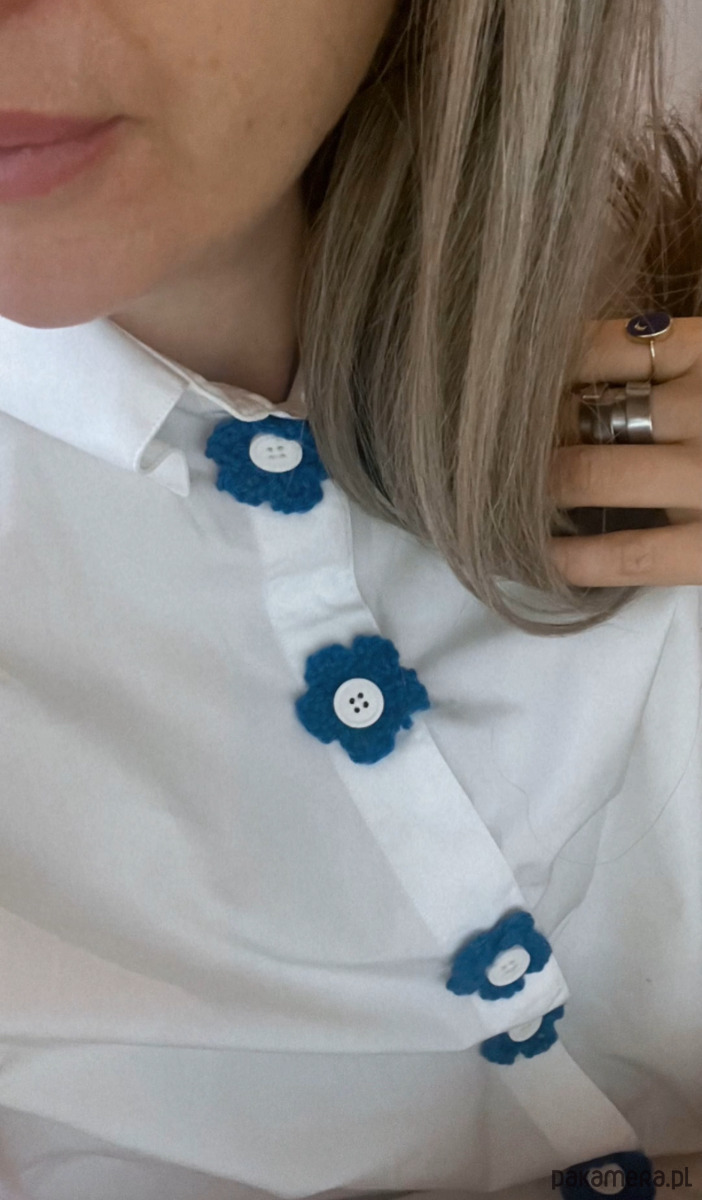 Każdy kwiatek powstaje ręcznie, z pełną świadomością, że jest detalem. Detal w modzie bywa ważniejszy niż ubranie, bo ujawnia charakter. Można nosić białą koszulę jak wszyscy, można też jednym ruchem zasugerować, że widzi się w niej coś więcej. Bez przerabiania, bez rewolucji krawieckich, jedynie przez zmianę… guzika. A właściwie tego, co go otacza.
