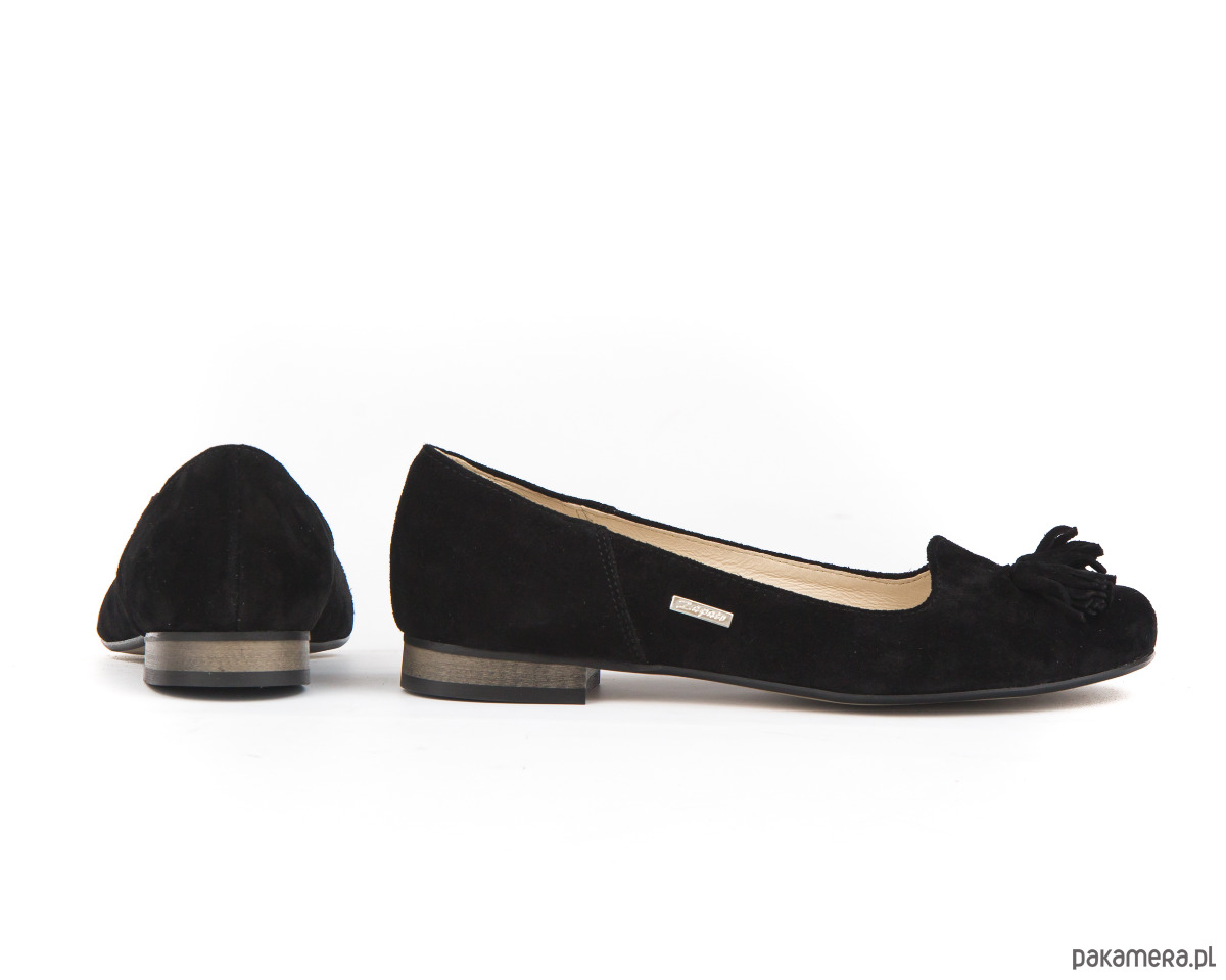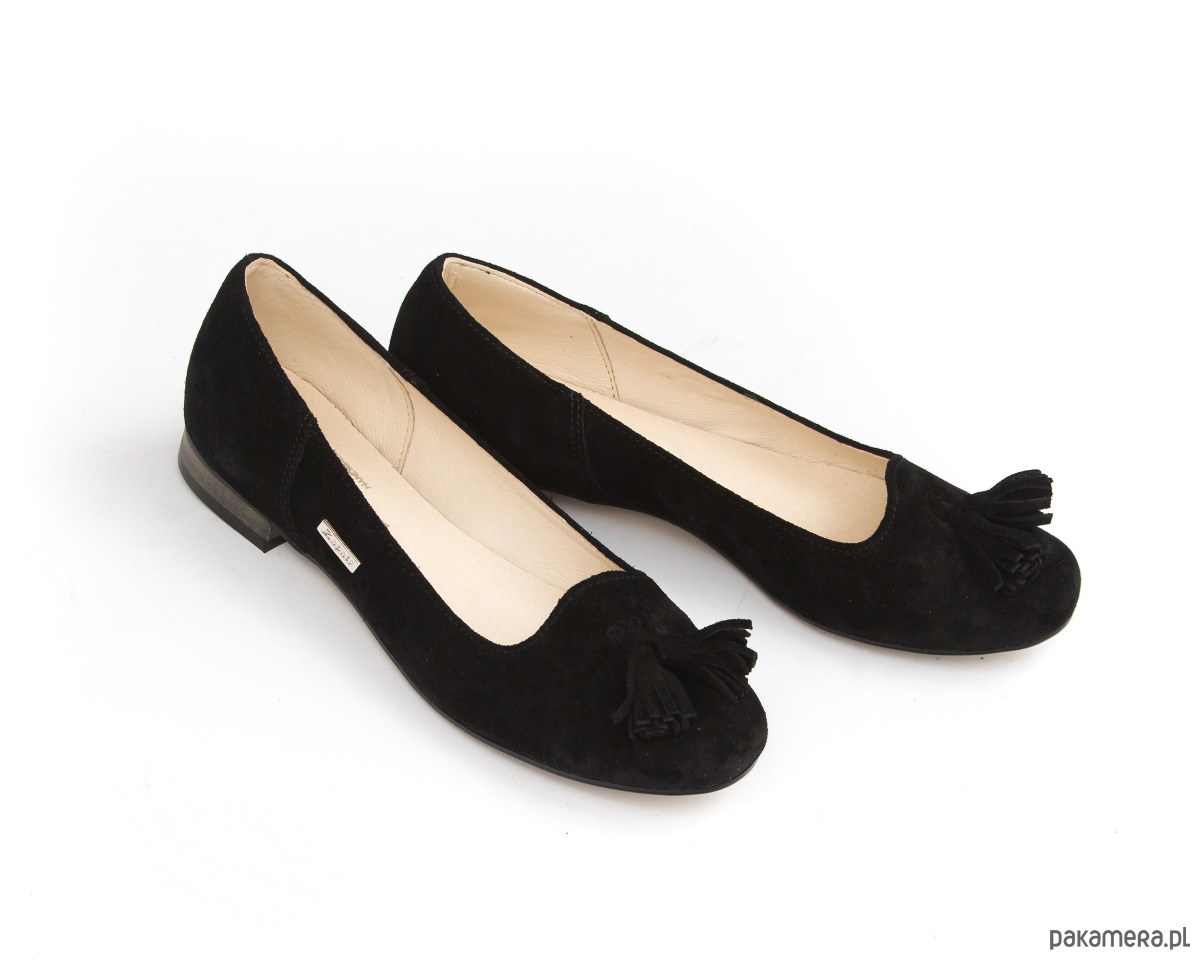 BALERINKI - SKÓRA NATURALNA - MODEL 009- KOLOR CZARNY WELUR