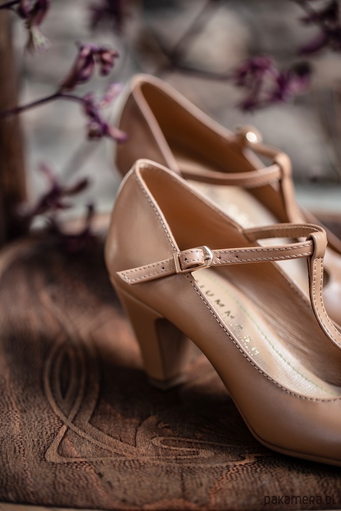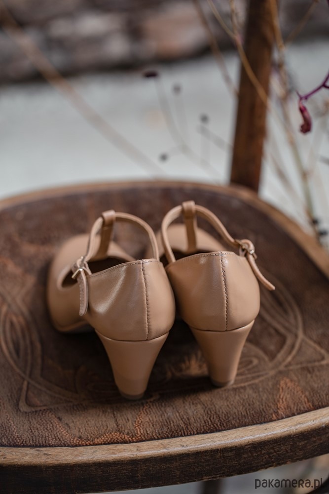 Bestsellerowy model balerin retro doczekał się swojej wersji na obcasie. Wygodny, stabilny, idealnie wyważony obcas wysokości 5,5 cm wysmukla łydki i nadal pozwala poruszać się pewnie i swobodnie. Doskonale uzupełnisz nimi sukienki i spódnice za kolano. Lubią też towarzystwo cygaretek.