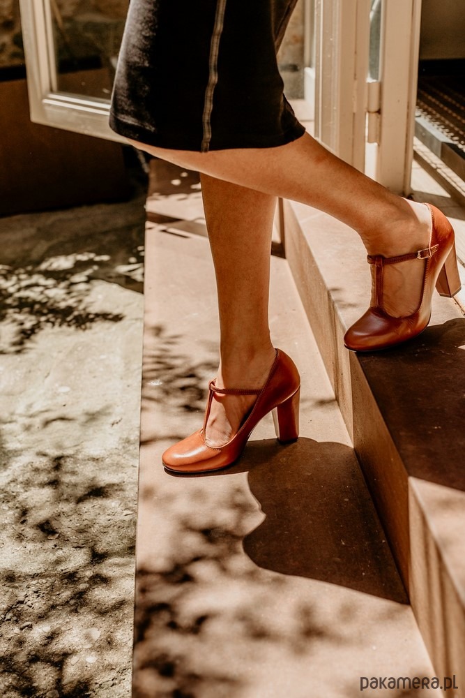 Bestsellerowy model balerin retro tym razem w wersji na obcasie 8cm. Wygodny, stabilny, idealnie wyważony obcas wysmukla łydki i nadal pozwala poruszać się pewnie i swobodnie. Doskonale uzupełnisz nimi sukienki i spódnice za kolano. Lubią też towarzystwo cygaretek.