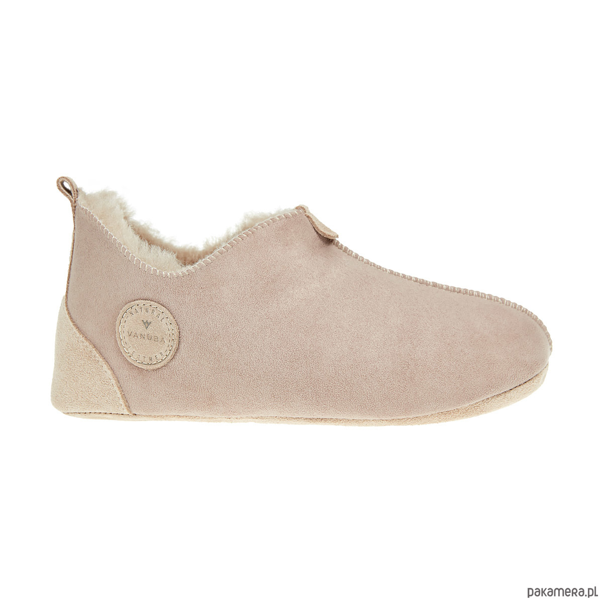 Od zewnętrznej części kapcie pokrywa w 100% naturalny zamsz w tradycyjnym, beżowym kolorze. Materiał jest miękki i elastyczny. Wyjątkowo elastyczna podeszwa wykonana z zamszu sprawia, że sprawdzą się doskonale nie tylko do chodzenia po domu w chłodne dni, ale nawet do spania. Na stopach dają odczucie zbliżone do noszenia grubej skarpetki.