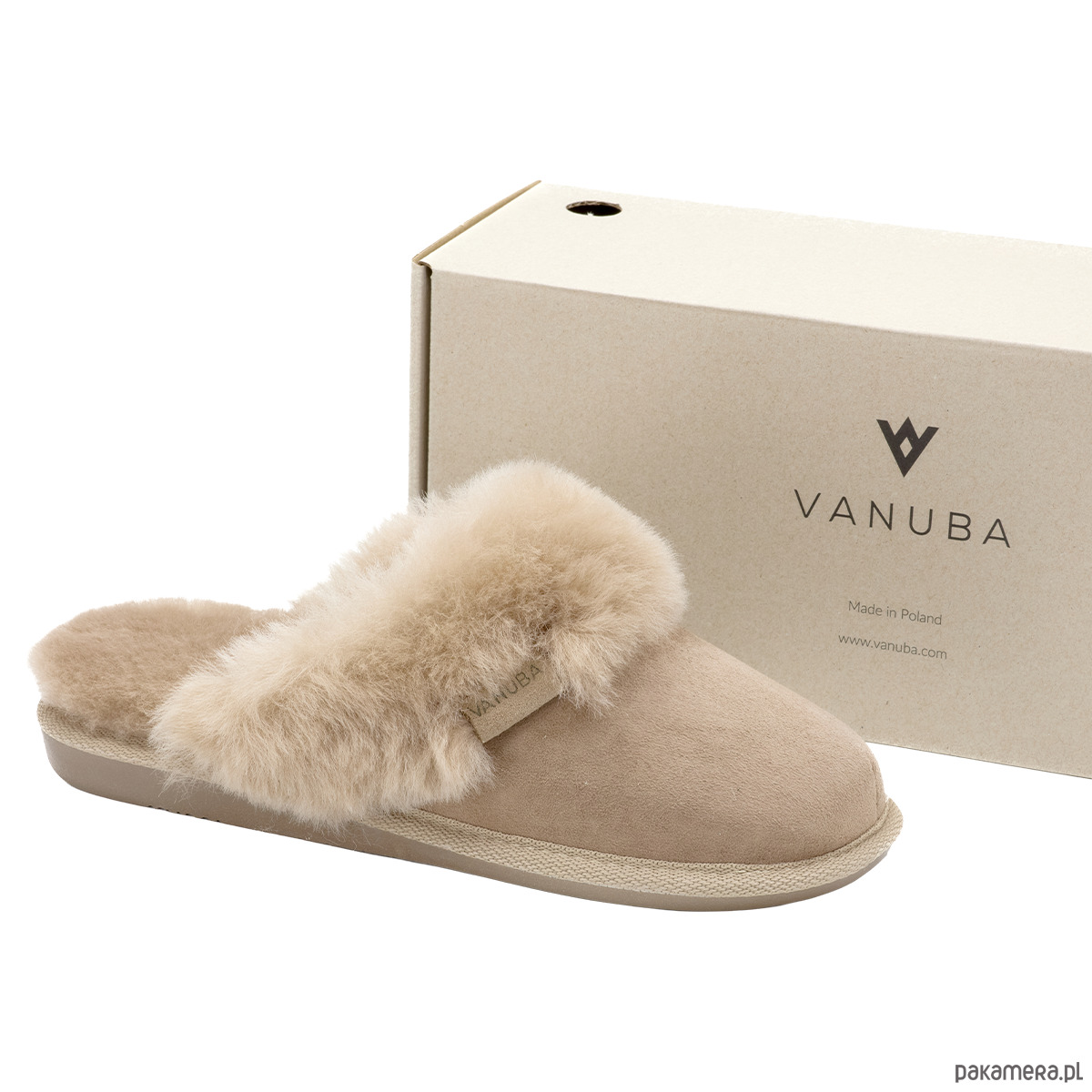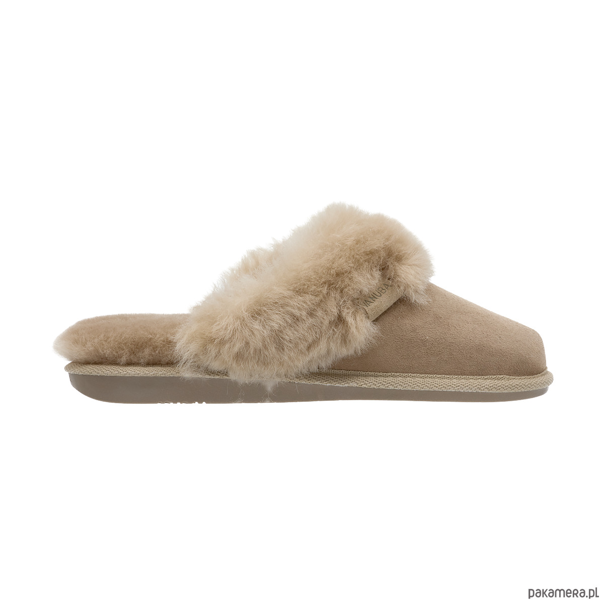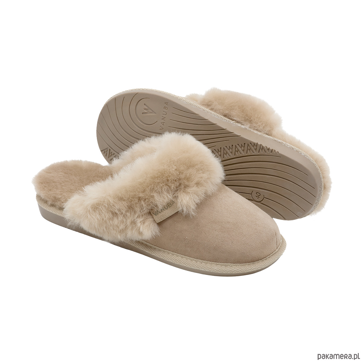 Te skórzane kapcie damskie to klasyka naszej marki. Prosty krój, ozdobne futerko i klasyczny, beżowy kolor czyni je must havem każdej kobiety.