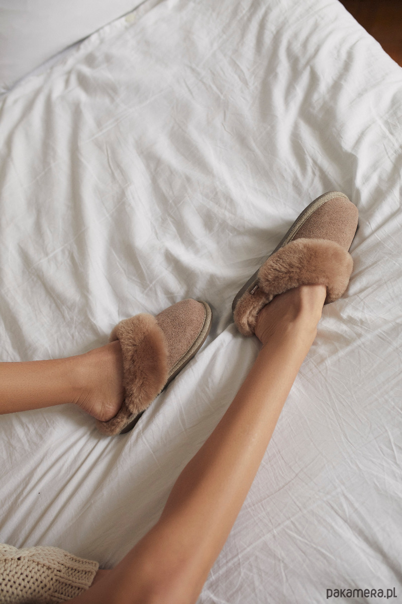 Wierzch kapci zdobi przyjemny kożuszek – przepięknie prezentuje się na stopach!