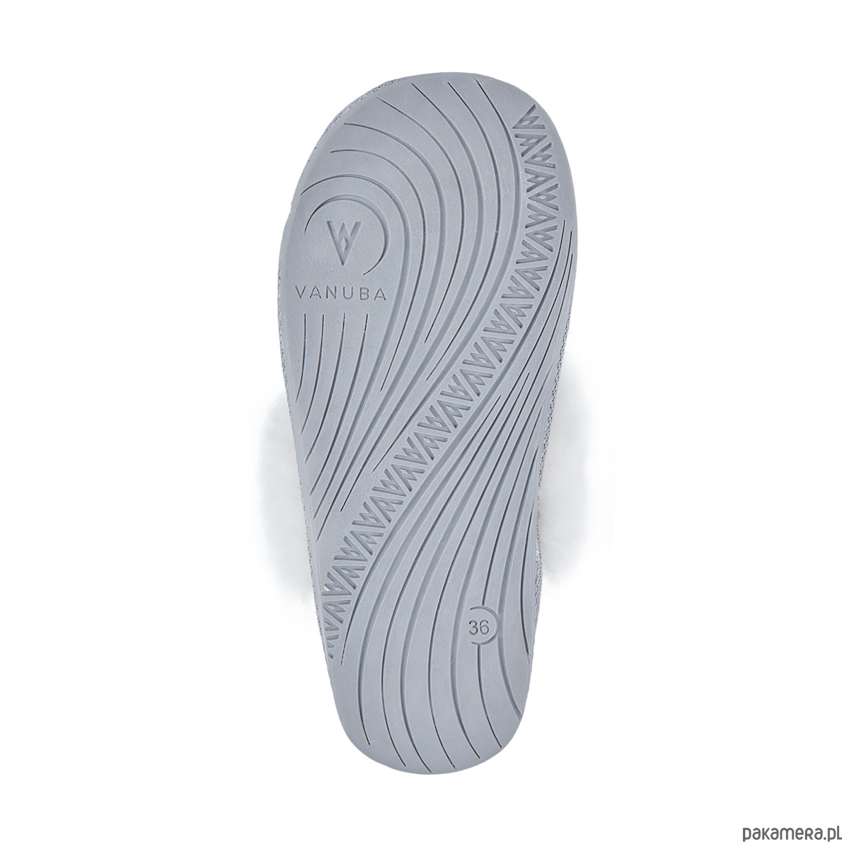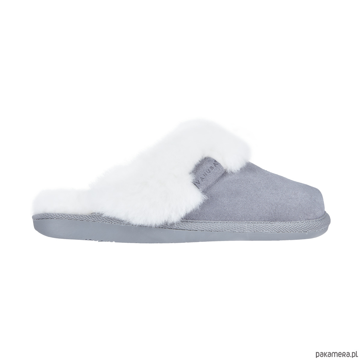 Wierzch kapci zdobi przyjemny biały kożuszek – przepięknie prezentuje się na stopach!