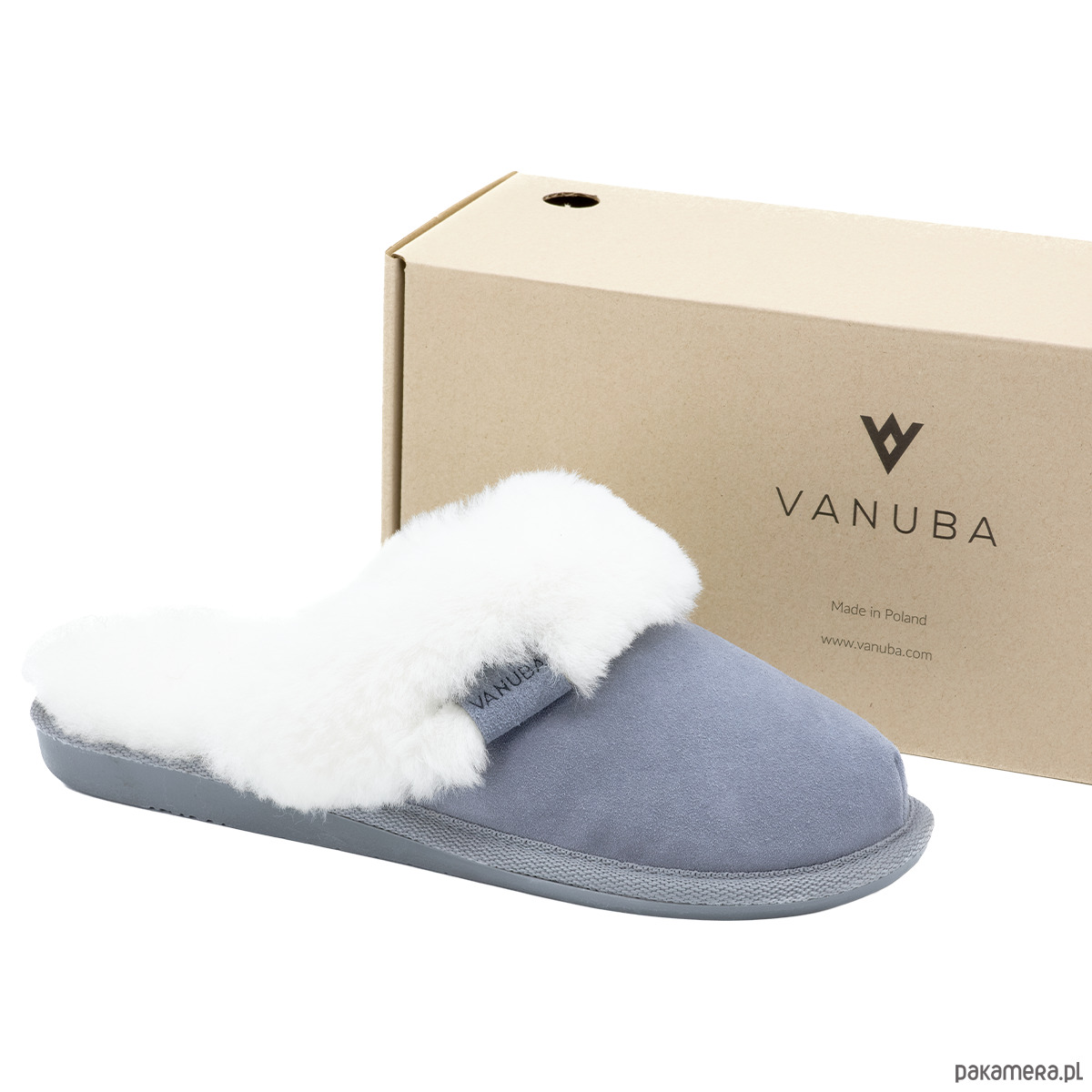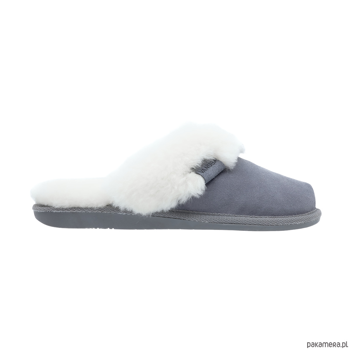 Te skórzane kapcie damskie to klasyka naszej marki. Prosty krój, ozdobne futerko i klasyczny, popielaty kolor czyni je must havem każdej kobiety.