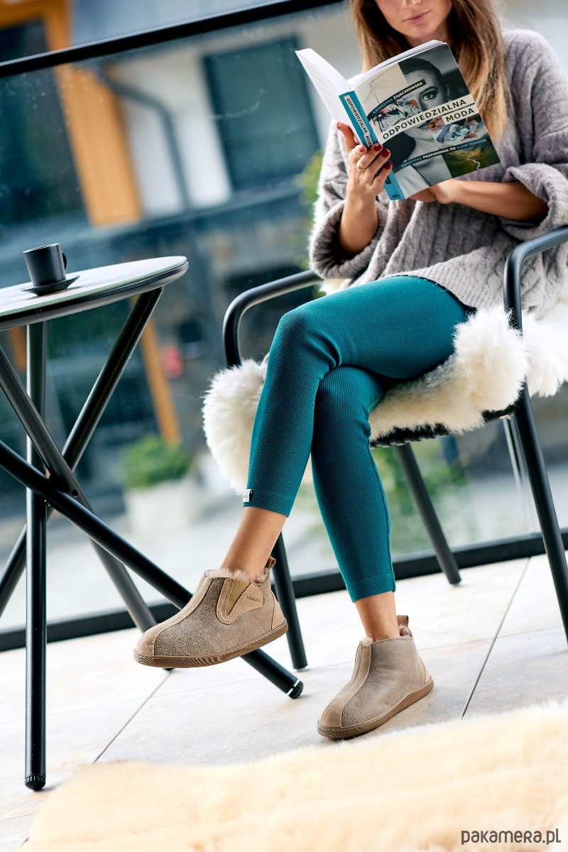 Uszyliśmy je z wysokiej jakości materiałów: miękkiej owczej wełny oraz naturalnej, higroskopijnej skóry owczej. Dzięki temu obuwie nie tylko przyjemnie grzeje w mroźne dni, ale też już w kilka chwil dostosowuje się do kształtu Twoich stóp.