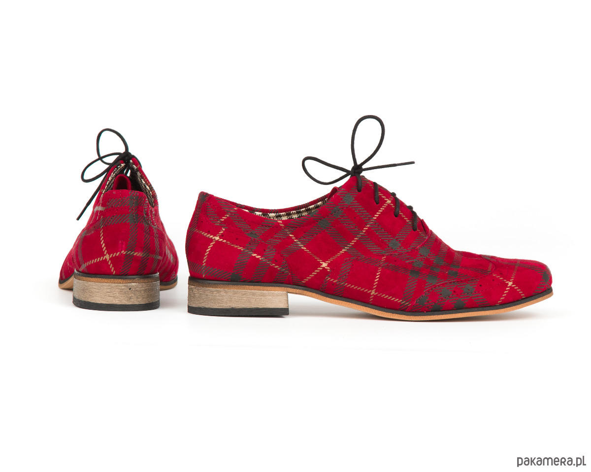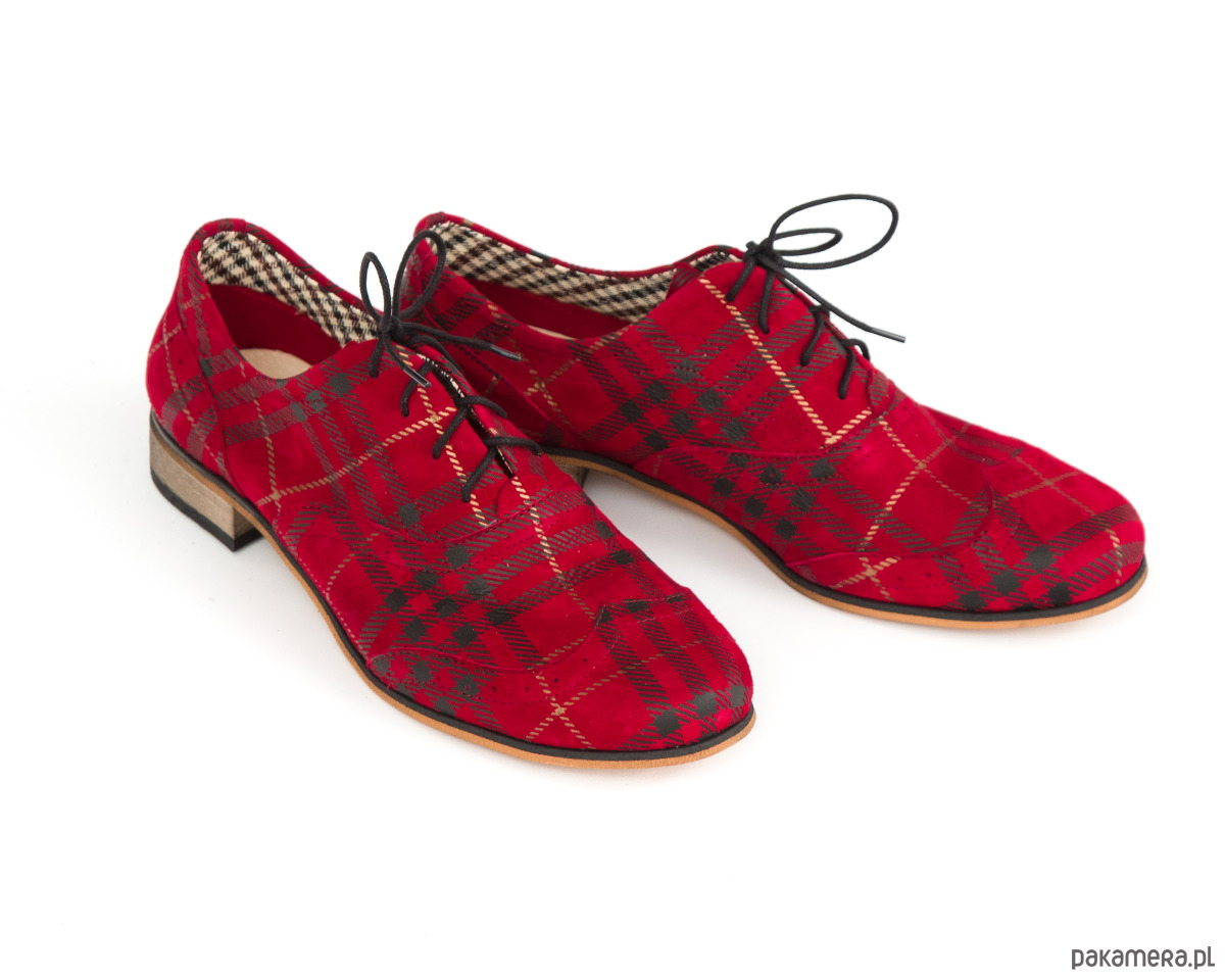 JAZZÓWKI - SKÓRA NATURALNA - MODEL 246 - KOLOR CZARNO CZERWONA KRATKA