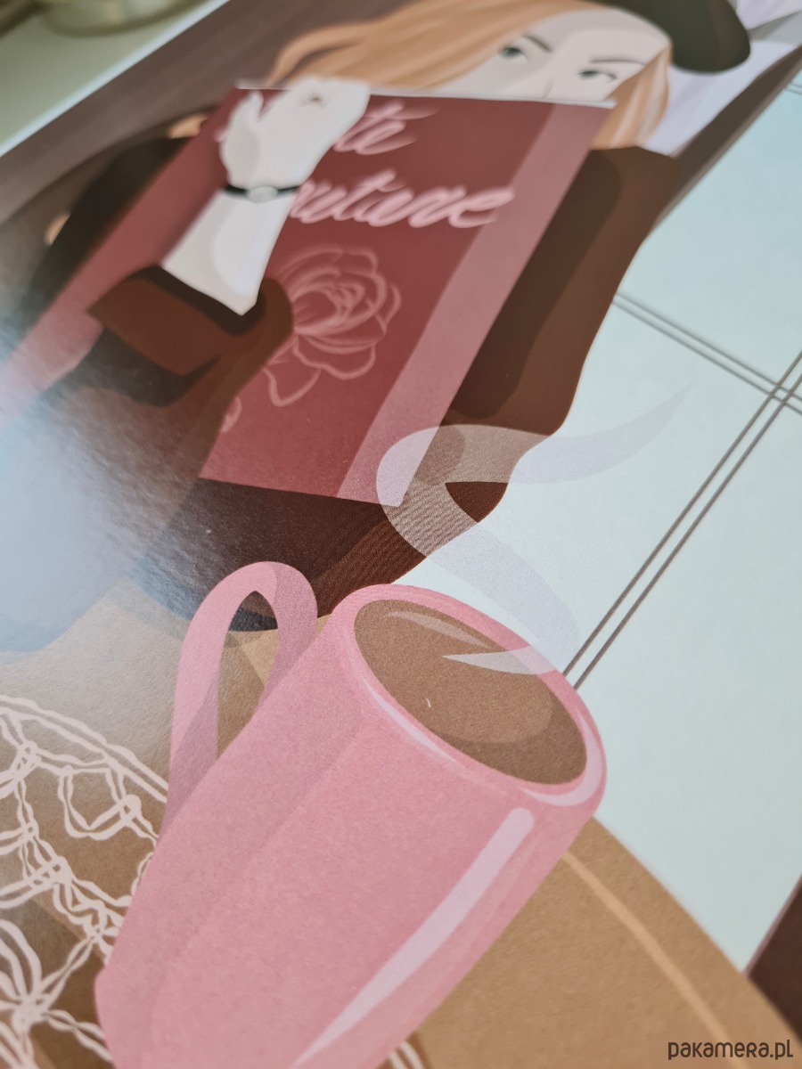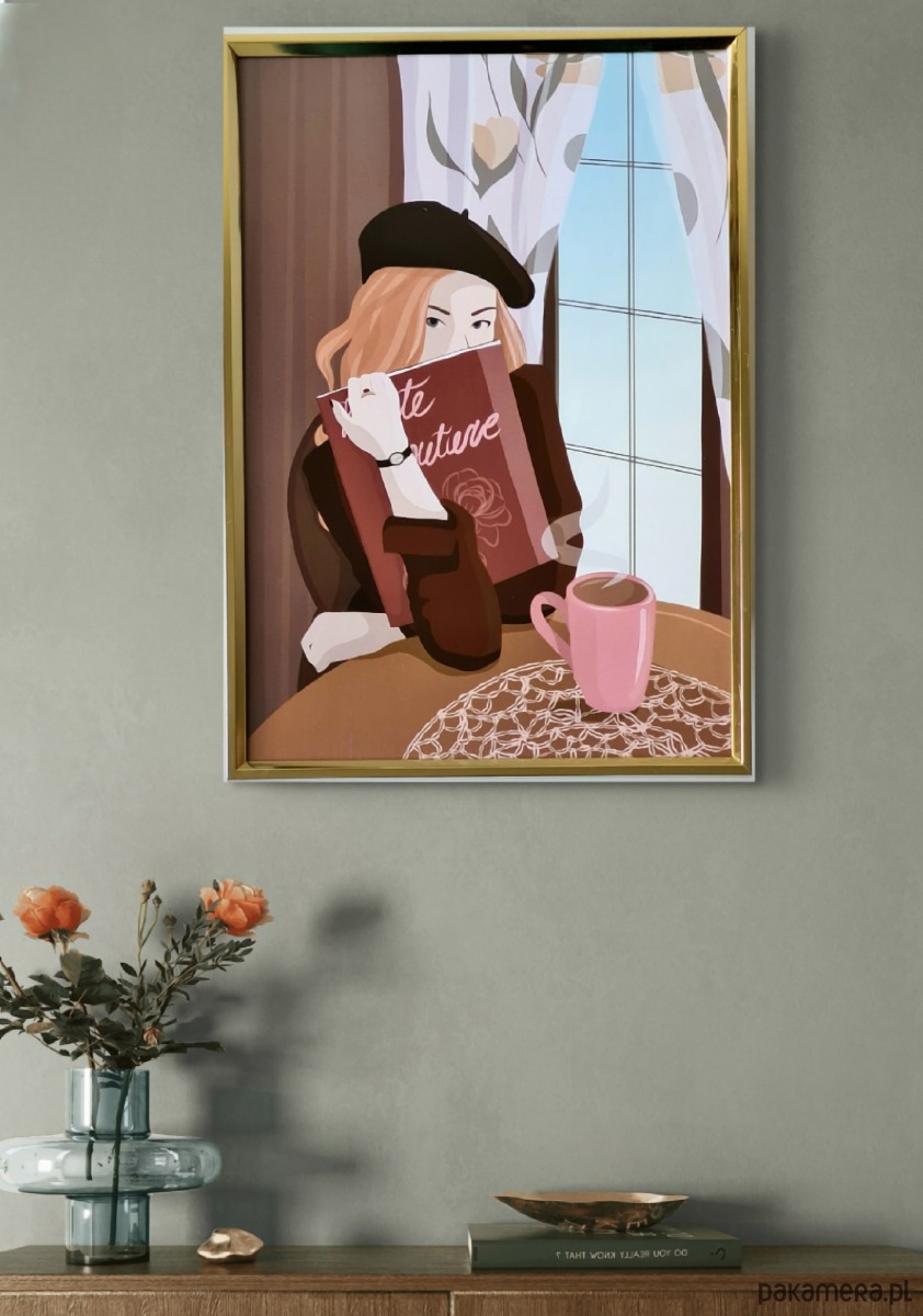 Obrazek będzie stanowić oryginalną dekorację zarówno w kawiarni ub salonie urody, jak i w domowym salonie, sypialni, przedpokoju. Pięknie wkomponuje się we wnętrze utrzymane w brązach, beżach i różu, ale też ociepli mieszkanie zdominowane prze chłodne barwy . Idealnie sprawdzi się na prezent dla fanki mody, francuskiego stylu, kawy, herbaty i beretów!
