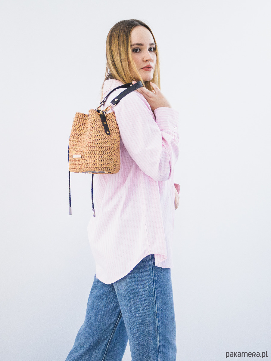Ten szydełkowy worek z rafii ozdobiony skórzanymi detalami wyróżnia się prostotą i elegancją. Jego naturalna pleciona faktura oddaje atmosferę spokojnych dni spędzonych na plażach u stop mitycznej góry Calpe. To idealna torebka na letnie dni i wieczory. Zabierz ja na spacer po plaży, wycieczkę po starym mieście, lub kolację z widokiem na morze. Zawsze doda twojej stylizacji śródziemnomorskiego uroku.