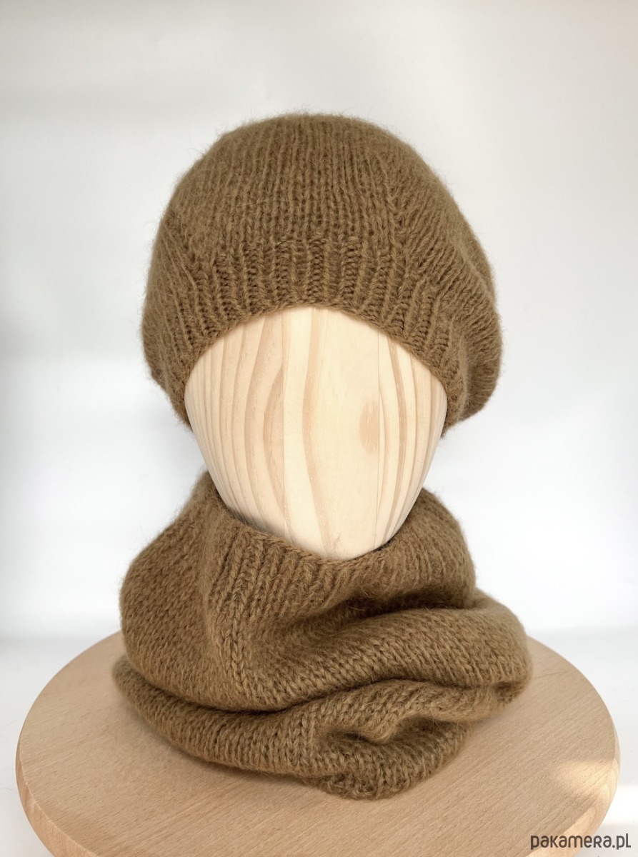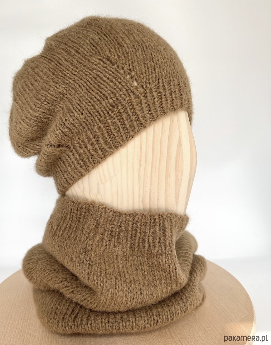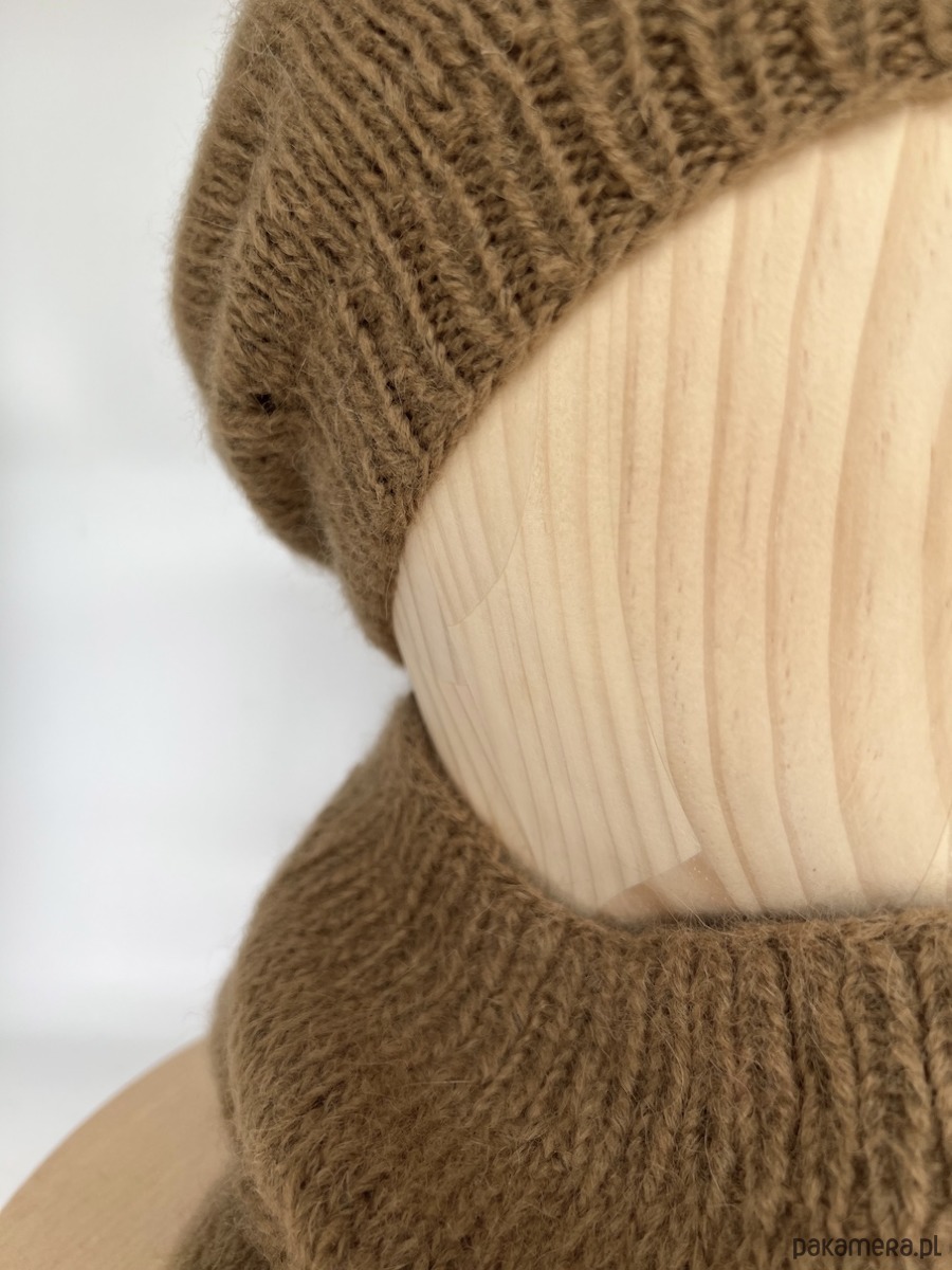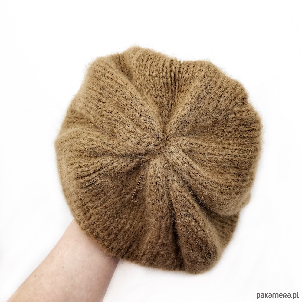 Camelowa czapka z alpaki należy do kolekcji lekkich jak piórko czapek beretowych, które nie zrujnują Twojej fryzury. Idealnie łączy się z camelowym kominem z alpaki.