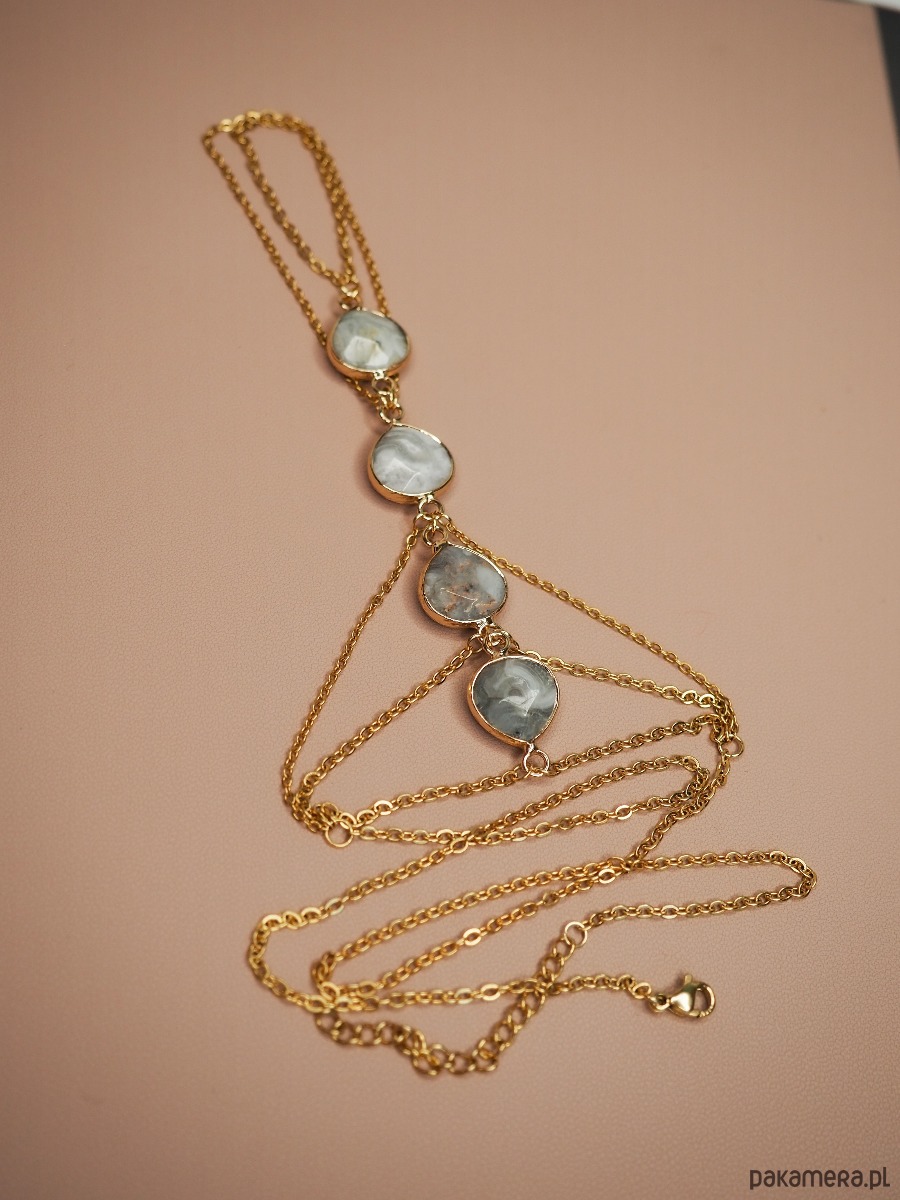 Piękna i wyjątkowa biżuteria na dłoń tworzona ręcznie. Stworzona z naturalnych labradorytów w oprawie oraz wysokiej jakości stali szlachetnej w kolorze złotym. Metal ten charakteryzuje się wysoką trwałością. Nie zmienia koloru, nie pojawia się na nim nalot. Ze względu na dużą twardość jest bardziej odporny na zarysowania niż inne metale, np. złoto. Ponadto stal szlachetna jest hipoalergiczna, więc nie powinna powodować uczulenia na skórze. Jest to zatem świetny wybór jeśli chodzi o biżuterię, która ma częsty kontakt ze skórą. Idealna na różne okazje, do eleganckiej stylizacji oraz na codzień.