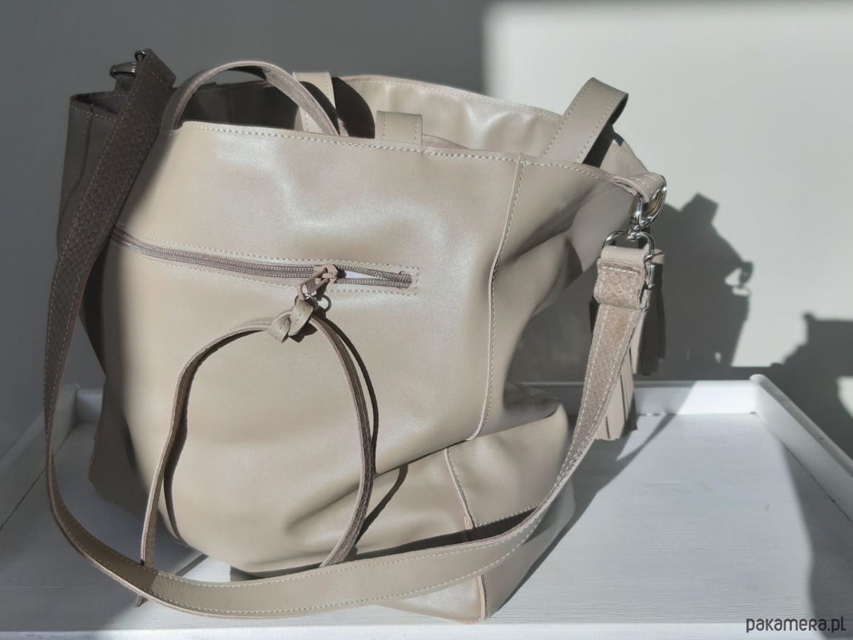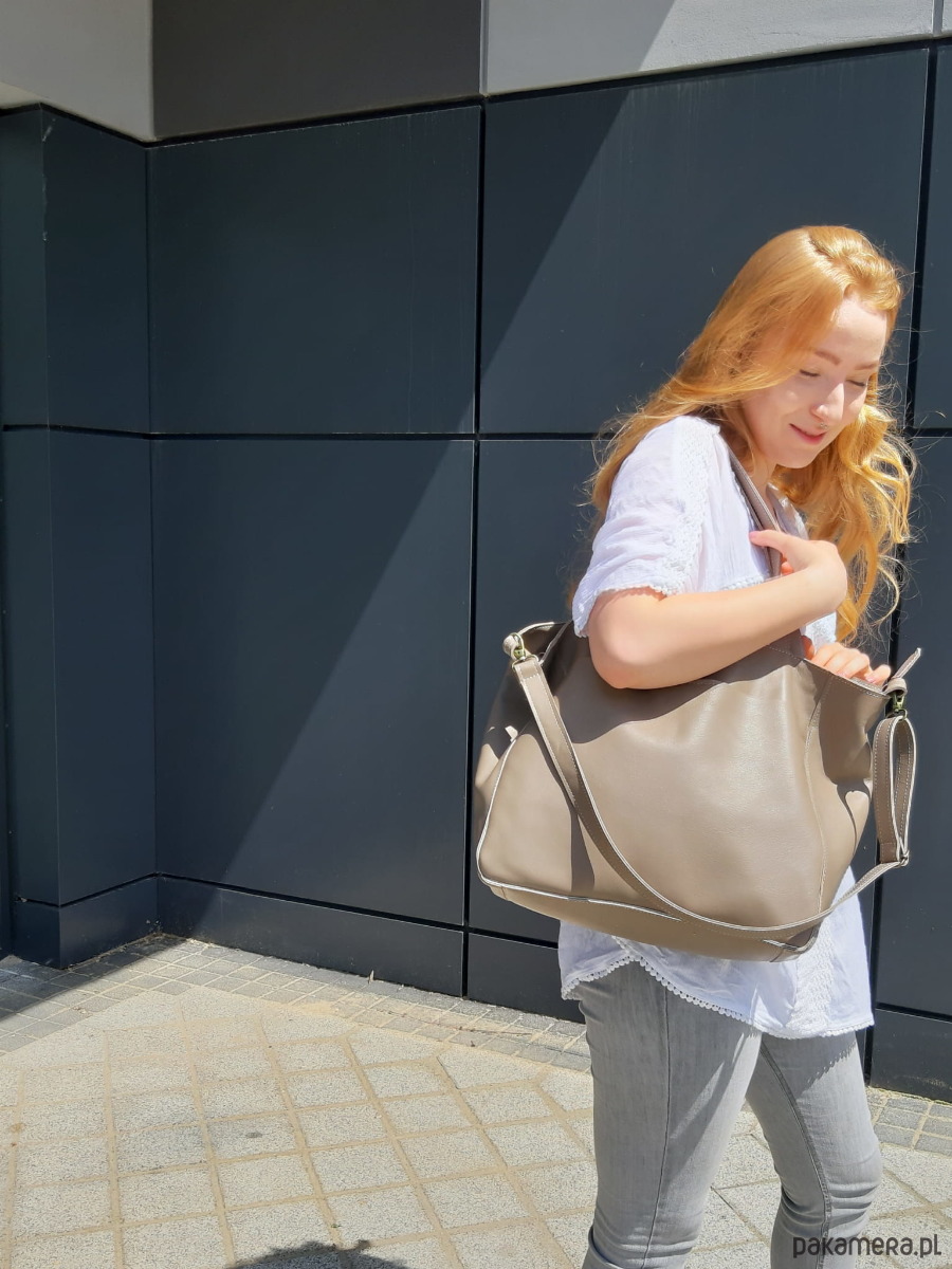 Torba bardzo pojemna, choć dzięki temu, że jest miękka nie przytłacza sylwetki, za to pomieści wszystko czego potrzebujesz na cały dzień.