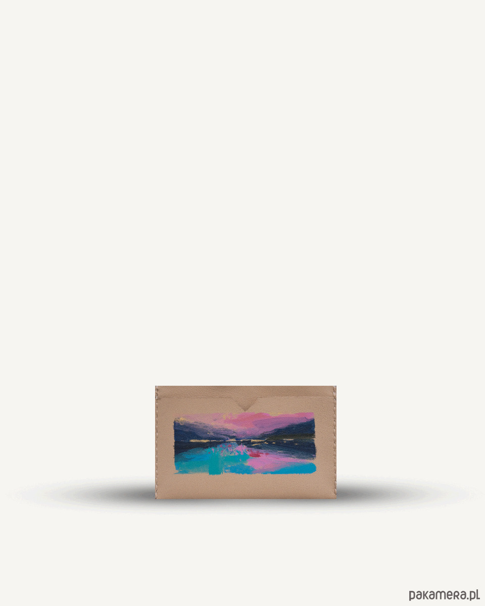 Cardholder z miękkiej koziej skóry malowany ręcznie farbami akrylowymi przez artystkę Anetę Szymkiewicz. Każdy egzemplarz jest niepowtarzalny. Jedna przegródka z przodu i z tyłu oraz jedna w środku. Pomieści karty oraz banknoty.
