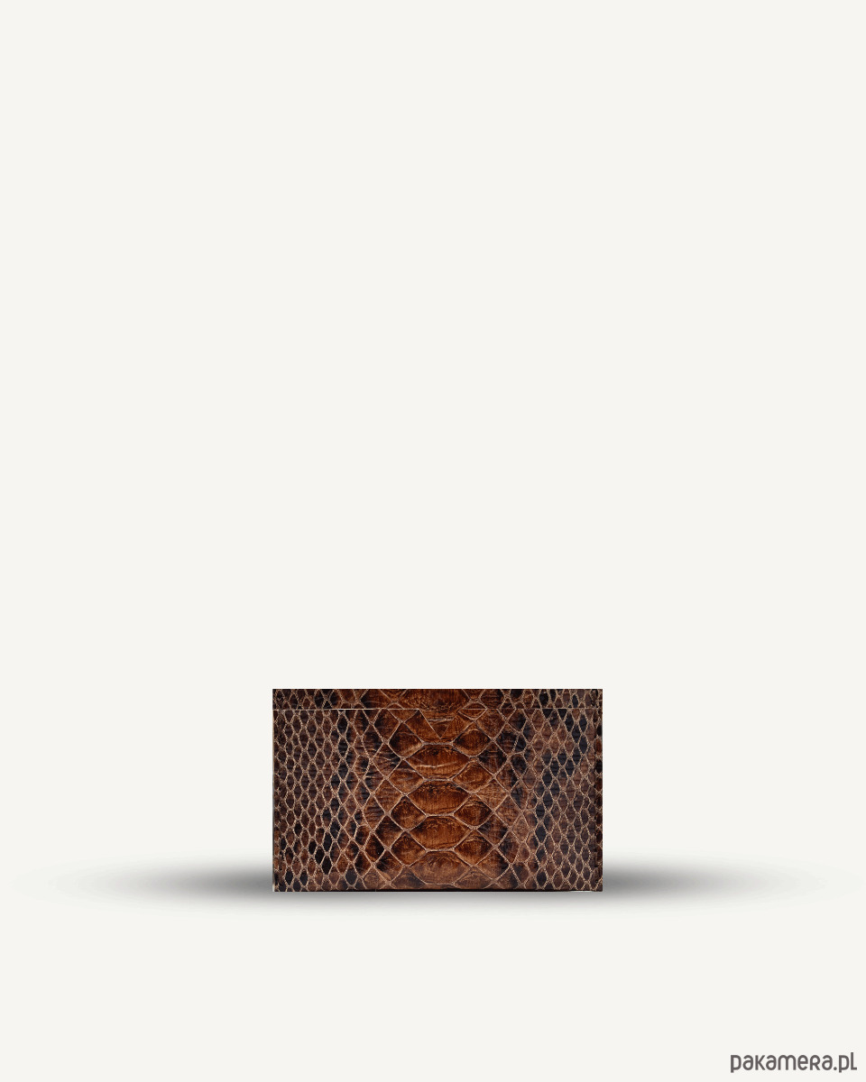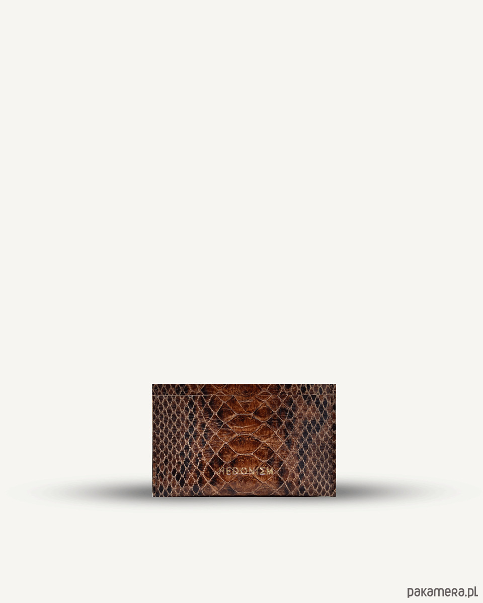 Cardholder ze skóry tłoczonej na wzór węża dostępnej w dwóch kolorach, w połysku z wyczuwalną łuską. Jedna przegródka z przodu i z tyłu oraz jedna w środku. Pomieści karty oraz banknoty.