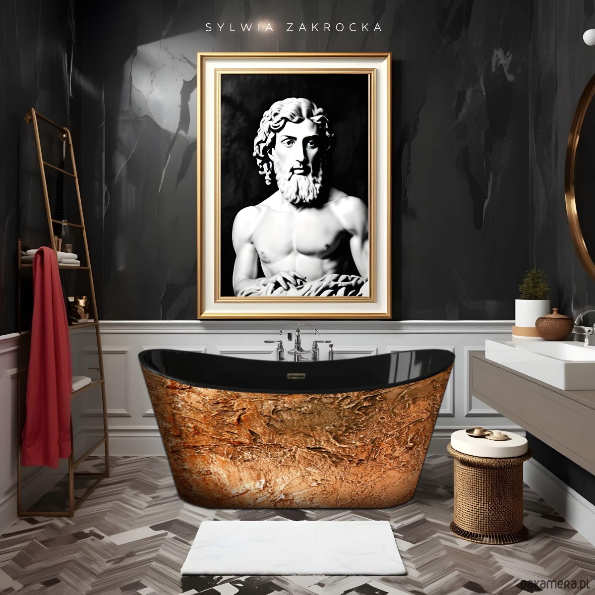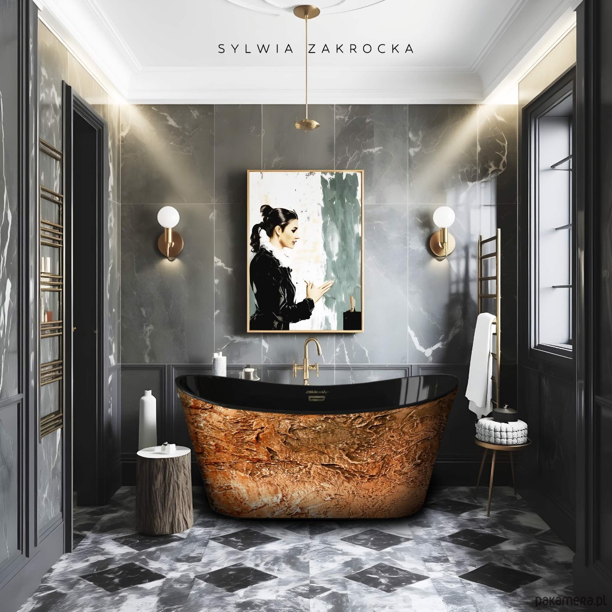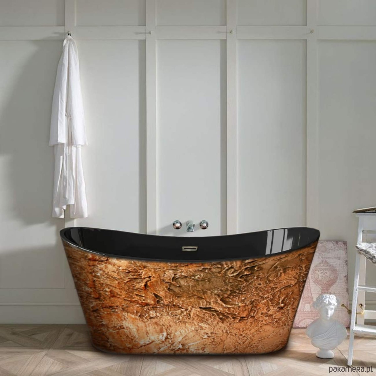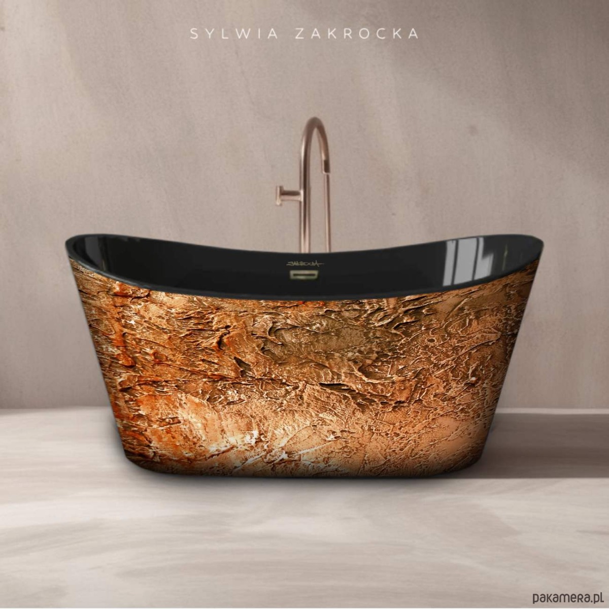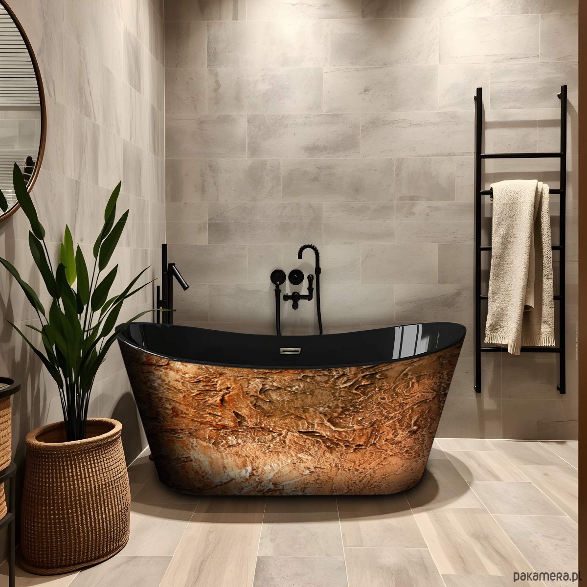 Unikalna wanna wolnostojąca z artystycznym wykończeniem z ceramiki żywicznej.