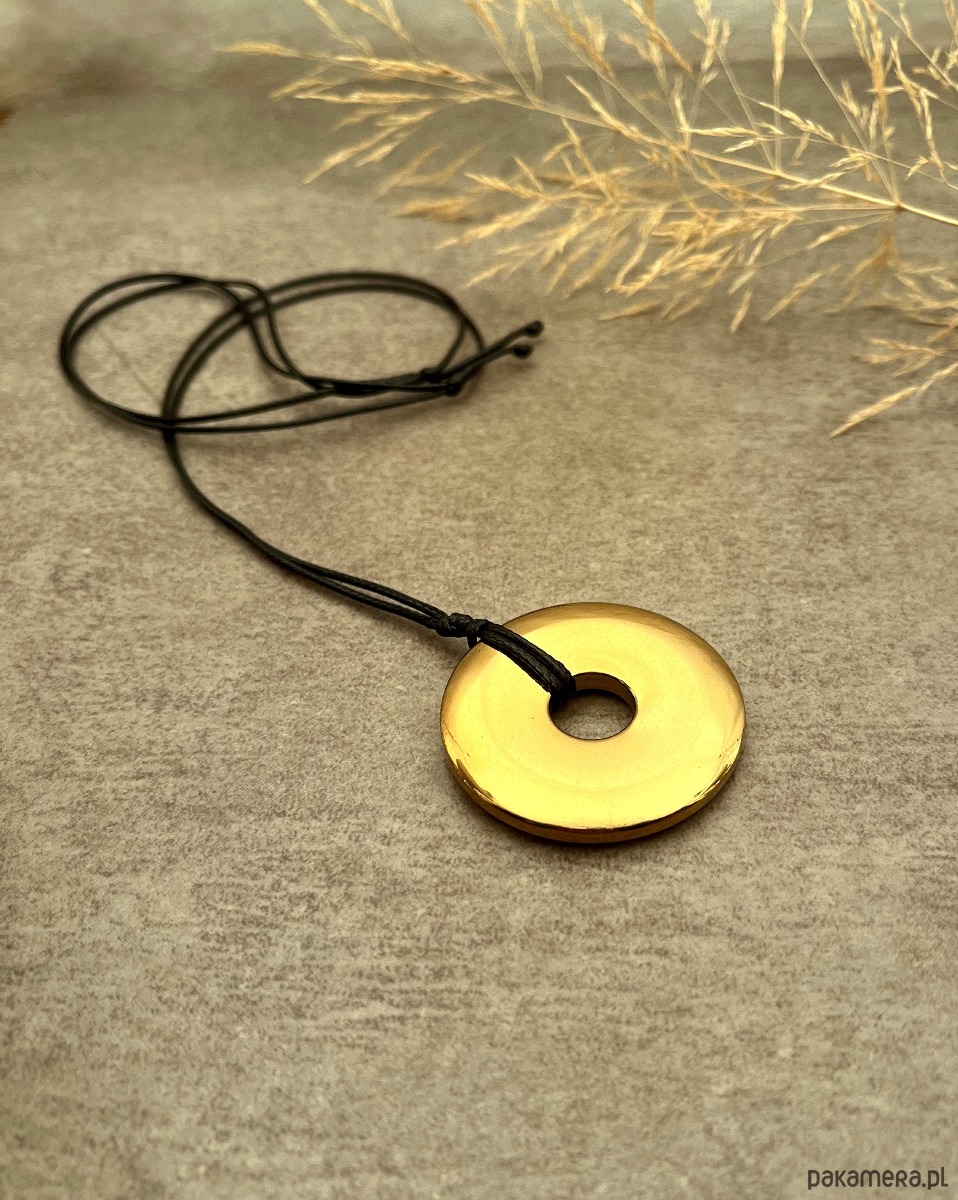 złoty hematyt donut 40 mm, czarny sznurek powlekany