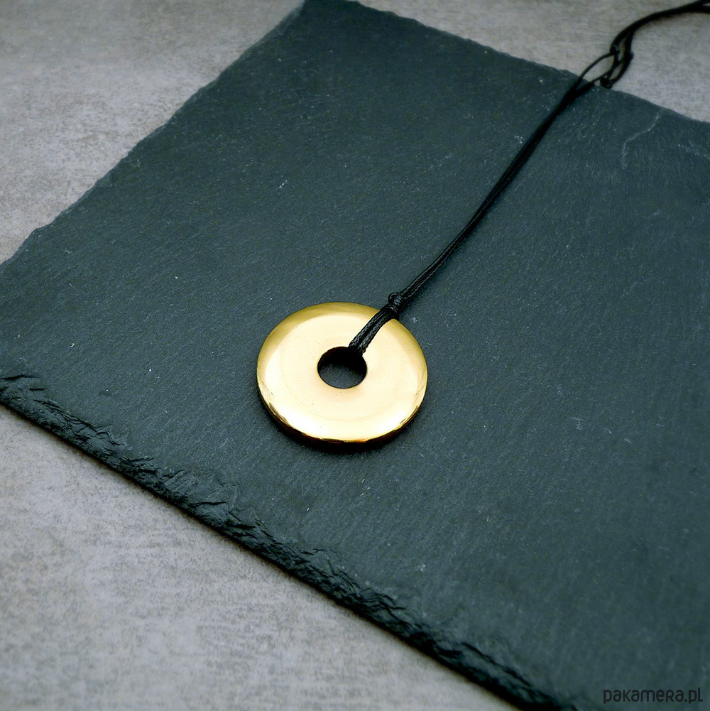 złoty hematyt donut 40 mm, czarny sznurek powlekany