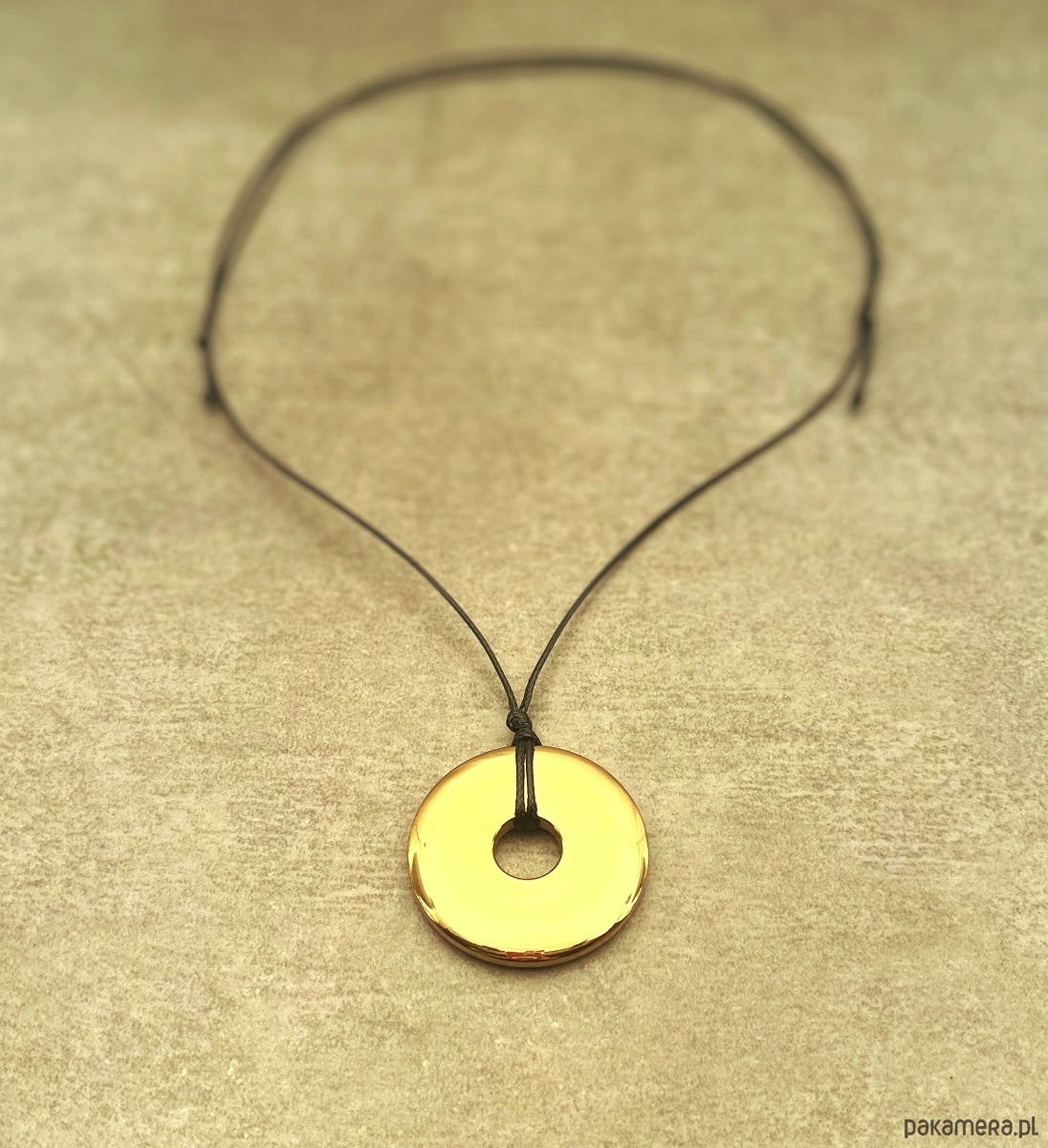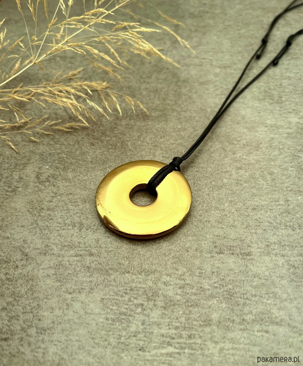 złoty hematyt donut 40 mm, czarny sznurek powlekany