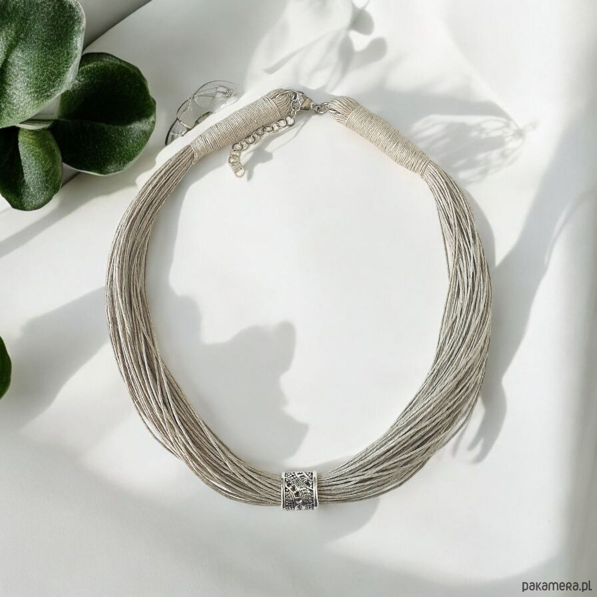 Materiały: naturalny len, metalowa przekładka, zapięcie stal chirurgiczna