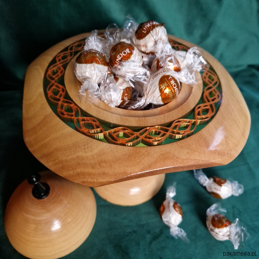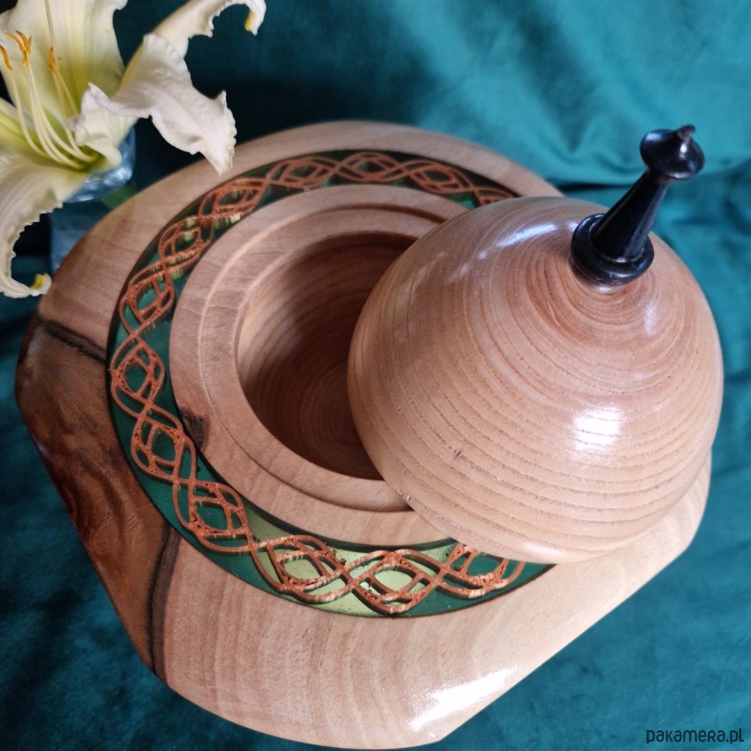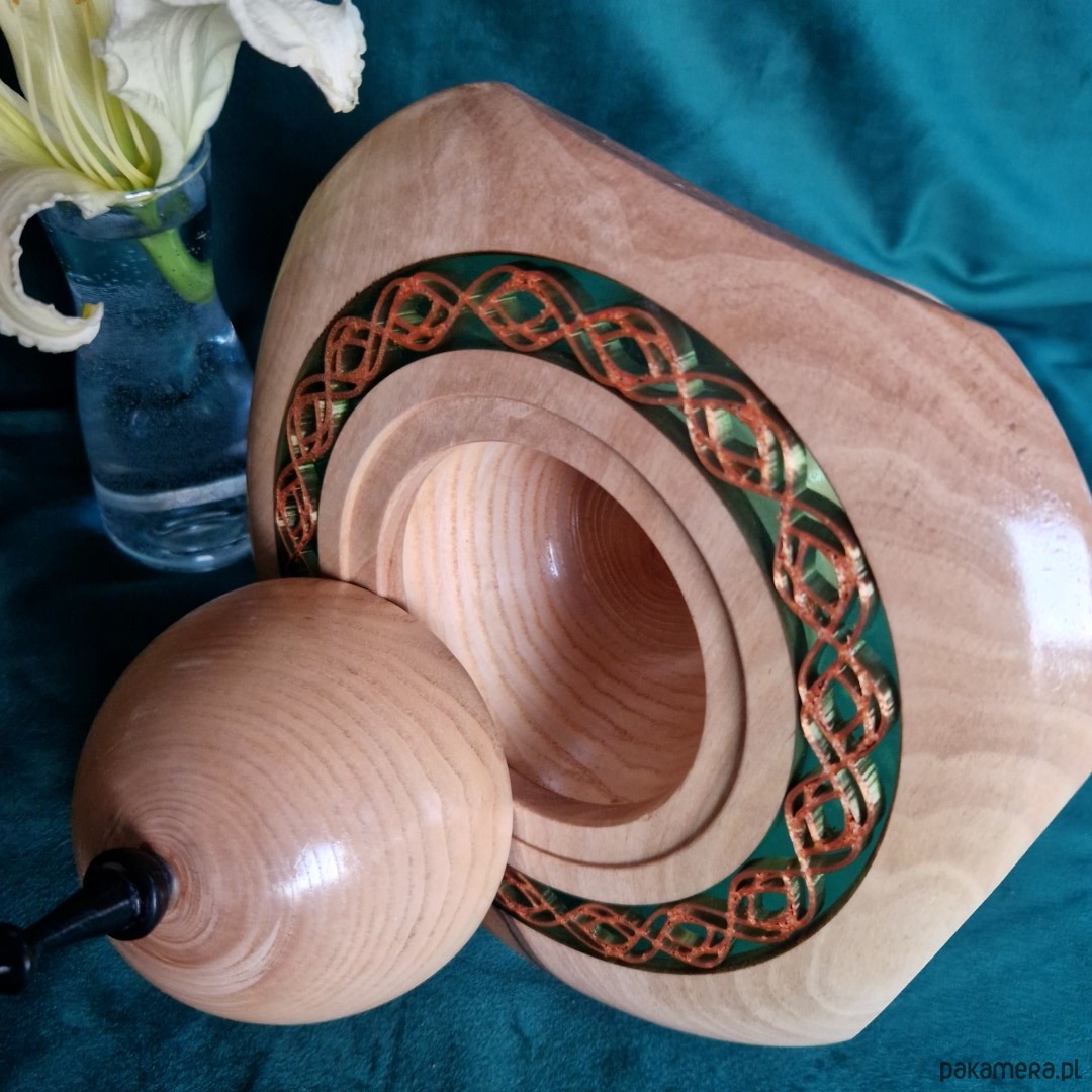 Każdy szczegół podkreśla słodycz, którą zawiera. Gładkie drewno, świecąca żywica epoksydowa i delikatny miedziany wzorek sprawiają, że ta ręcznie wykonana drewniana bombonierka jest zarówno piękna, jak i funkcjonalna. Idealna na czekoladki, małe skarby lub prezenty, zamienia codzienną przyjemność w rytuał radości i rozkoszy.