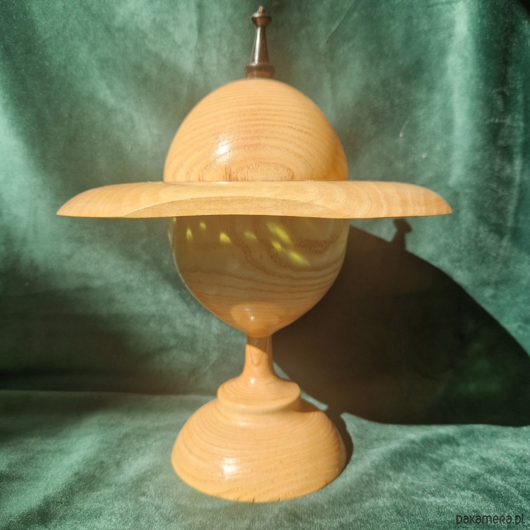 Materiały: Drewno jesionowe, drewno jabłoni, drewno hebanowe, żywica epoksydowa, polimer