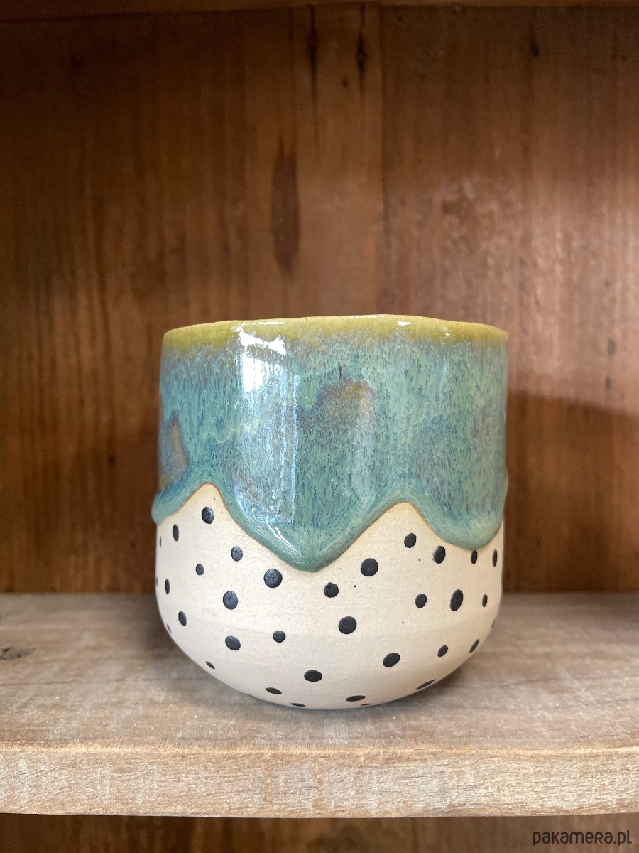 Ceramiczna czarka w groszki.