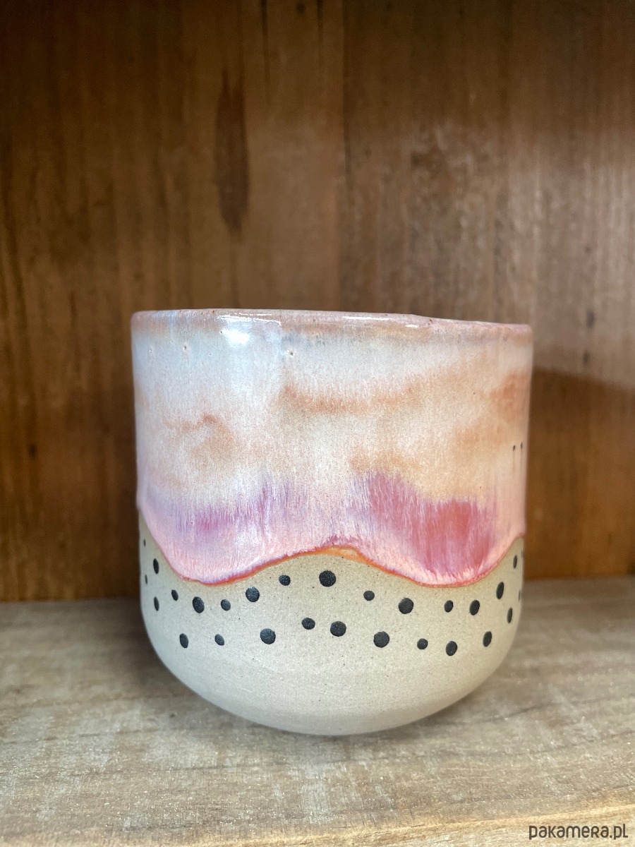 Ceramiczna czarka w groszki.