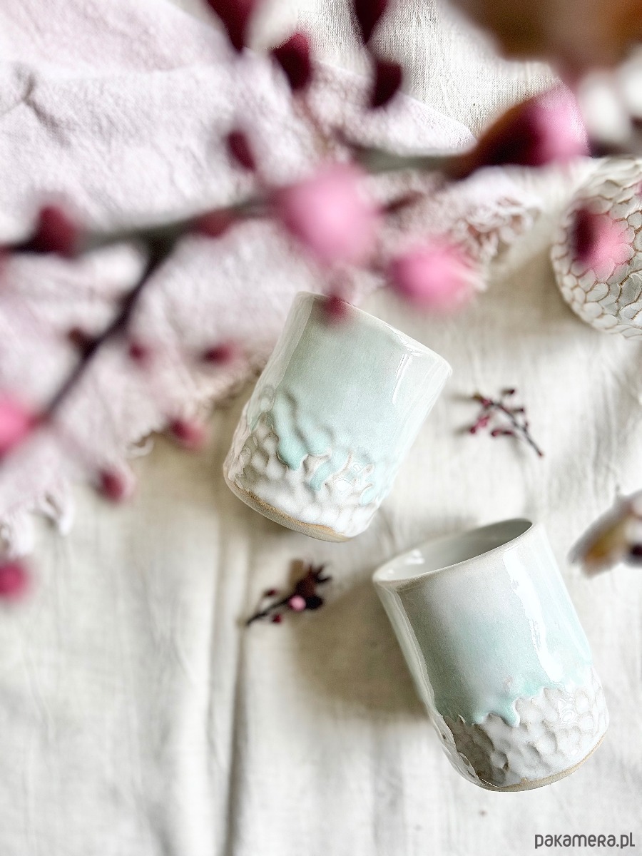 Ręcznie lepiona czarka z pięknym miętowym szkliwem i ręcznie nadaną fakturą.