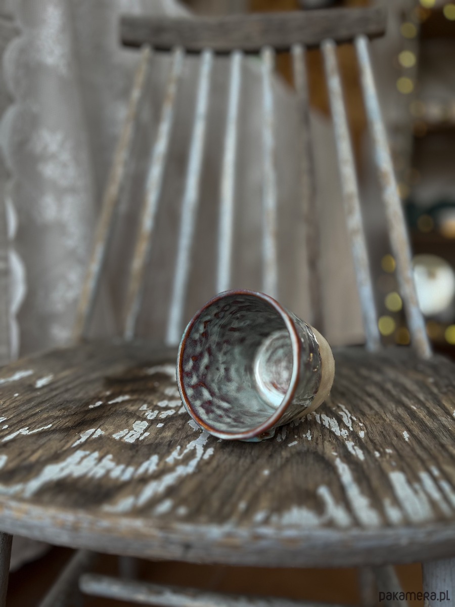 Połowa czarki jest bez szkliwa, dzięki czemu można poczuć przyjemną strukturę gliny.