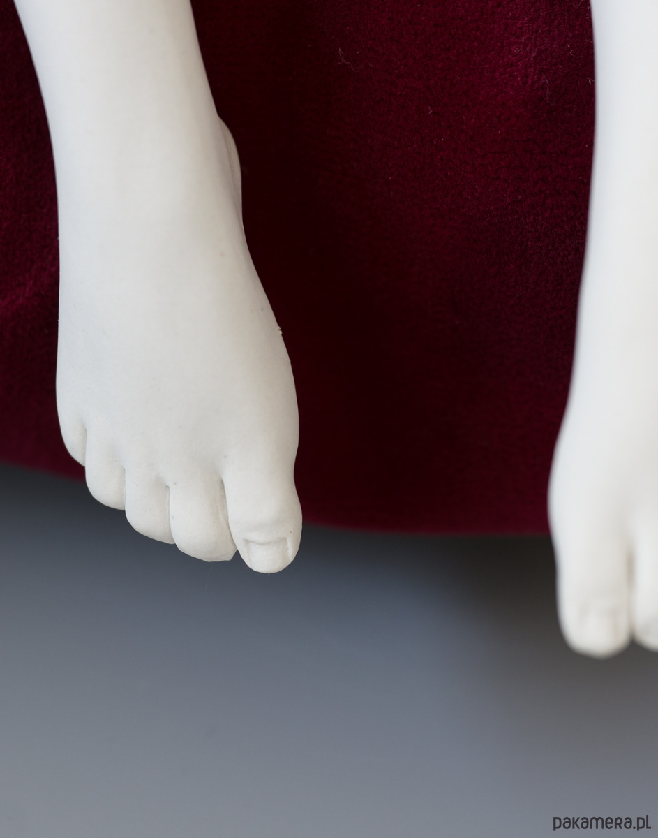 Porcelanowa lalka wypalona bez szkliwa w wysokiej temperaturze 1235’C.