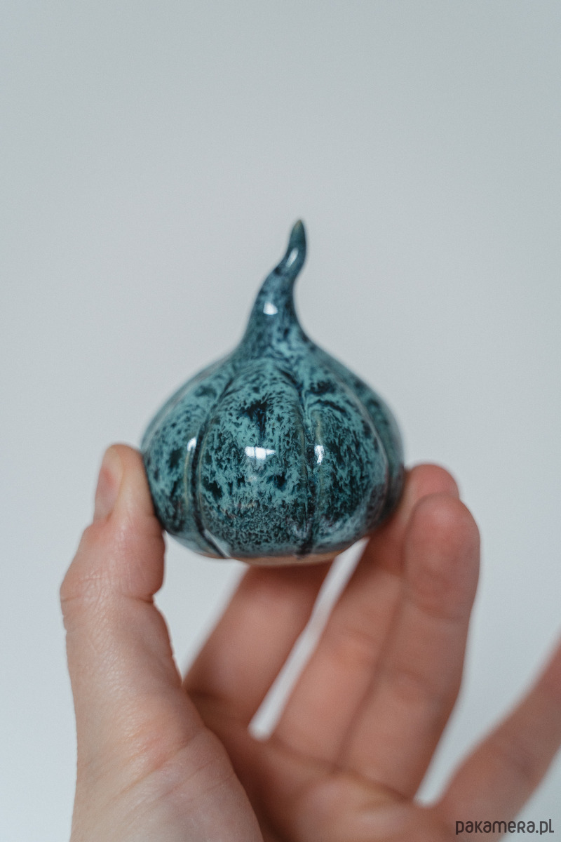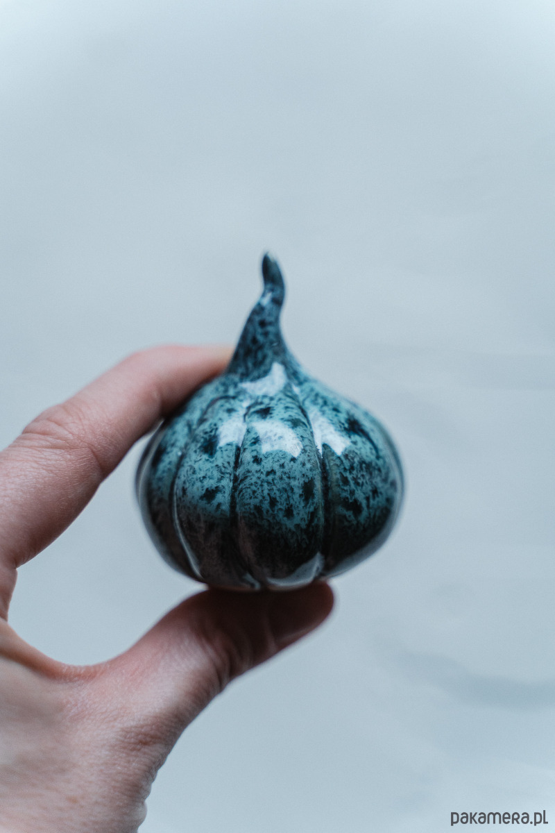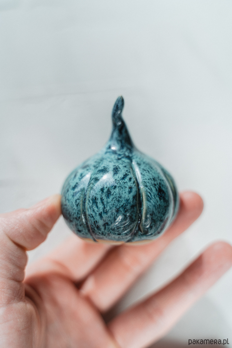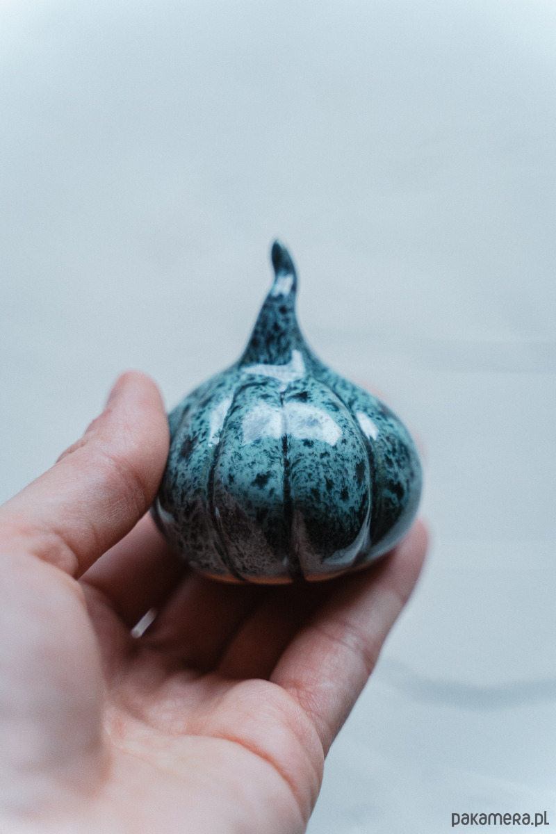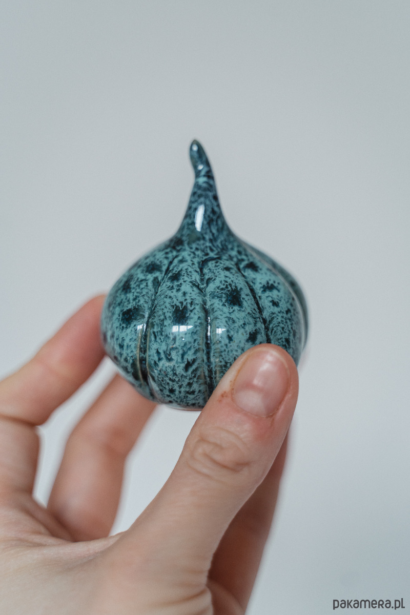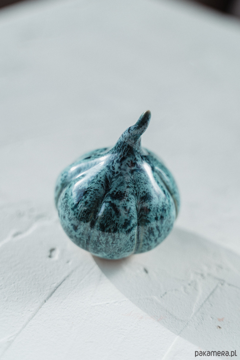 Ceramiczna figurka - dynia wykonana ręcznie z jasnej gliny.