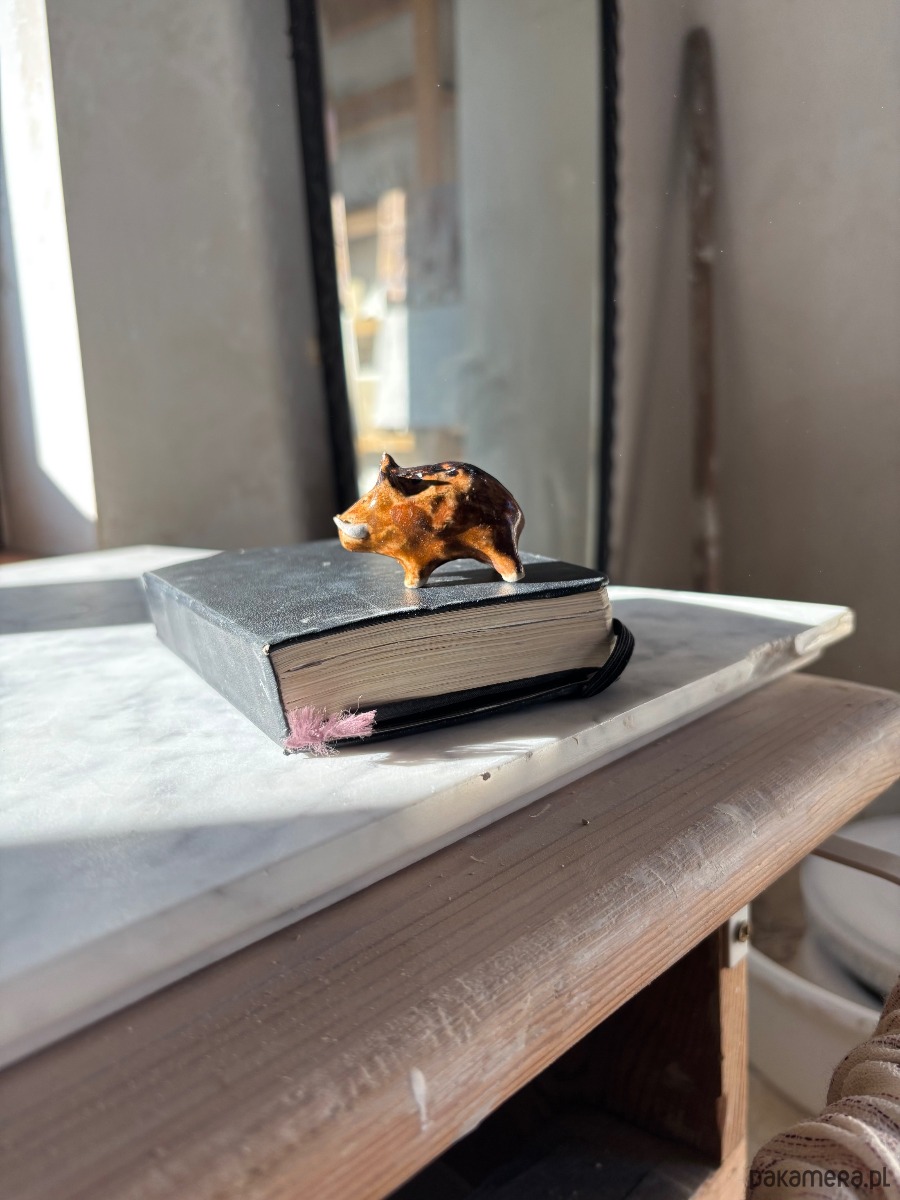 Urocza ceramiczna figurka dzika ręcznie wykonana w polskiej pracowni ceramicznej Maison Fragile.