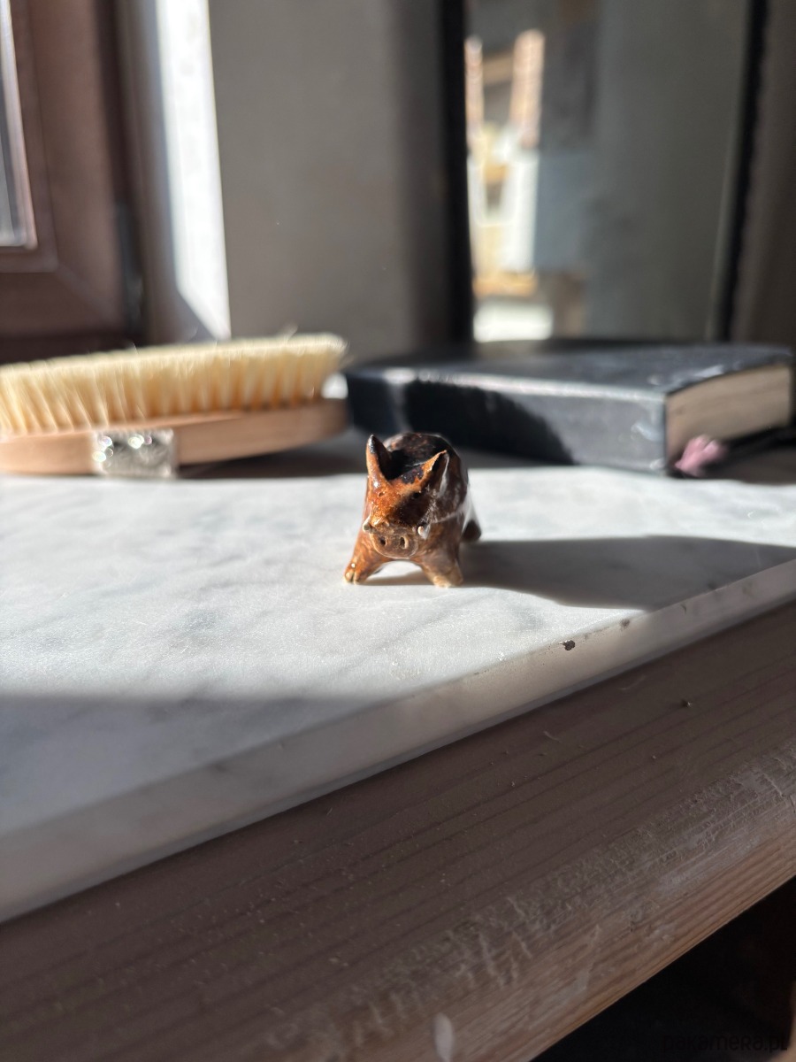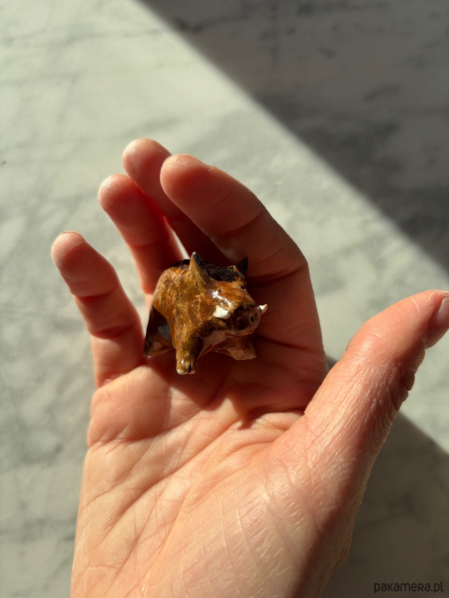 Urocza ceramiczna figurka dzika ręcznie wykonana w polskiej pracowni ceramicznej Maison Fragile.