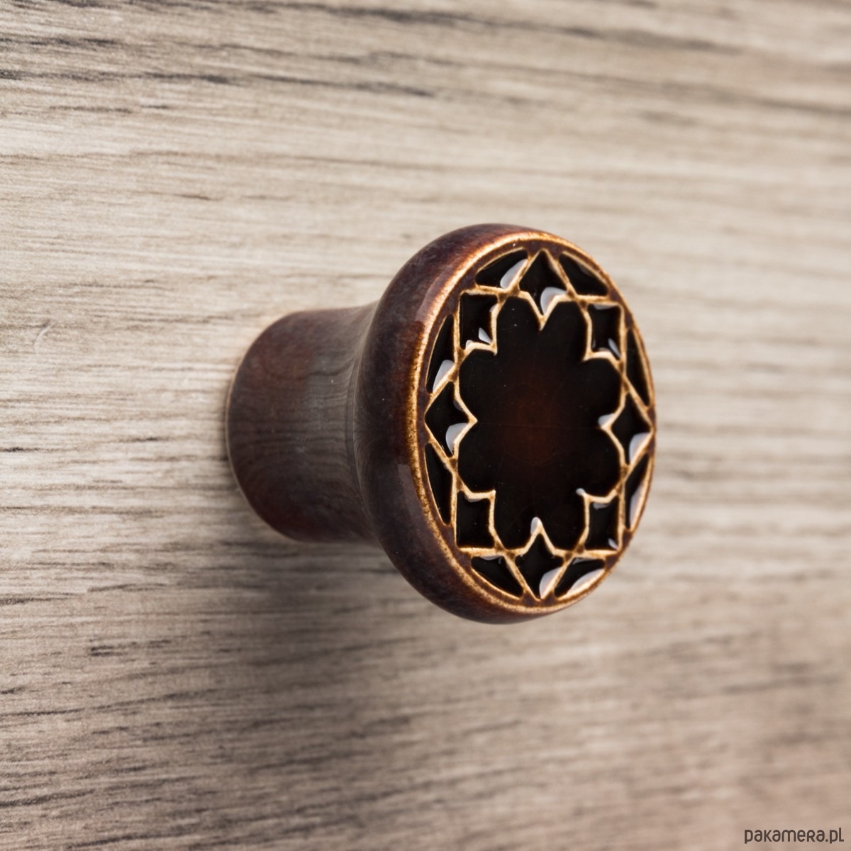 Ceramiczna gałka do mebli, ciemnobrązowa, wz.3, ręcznie robiona