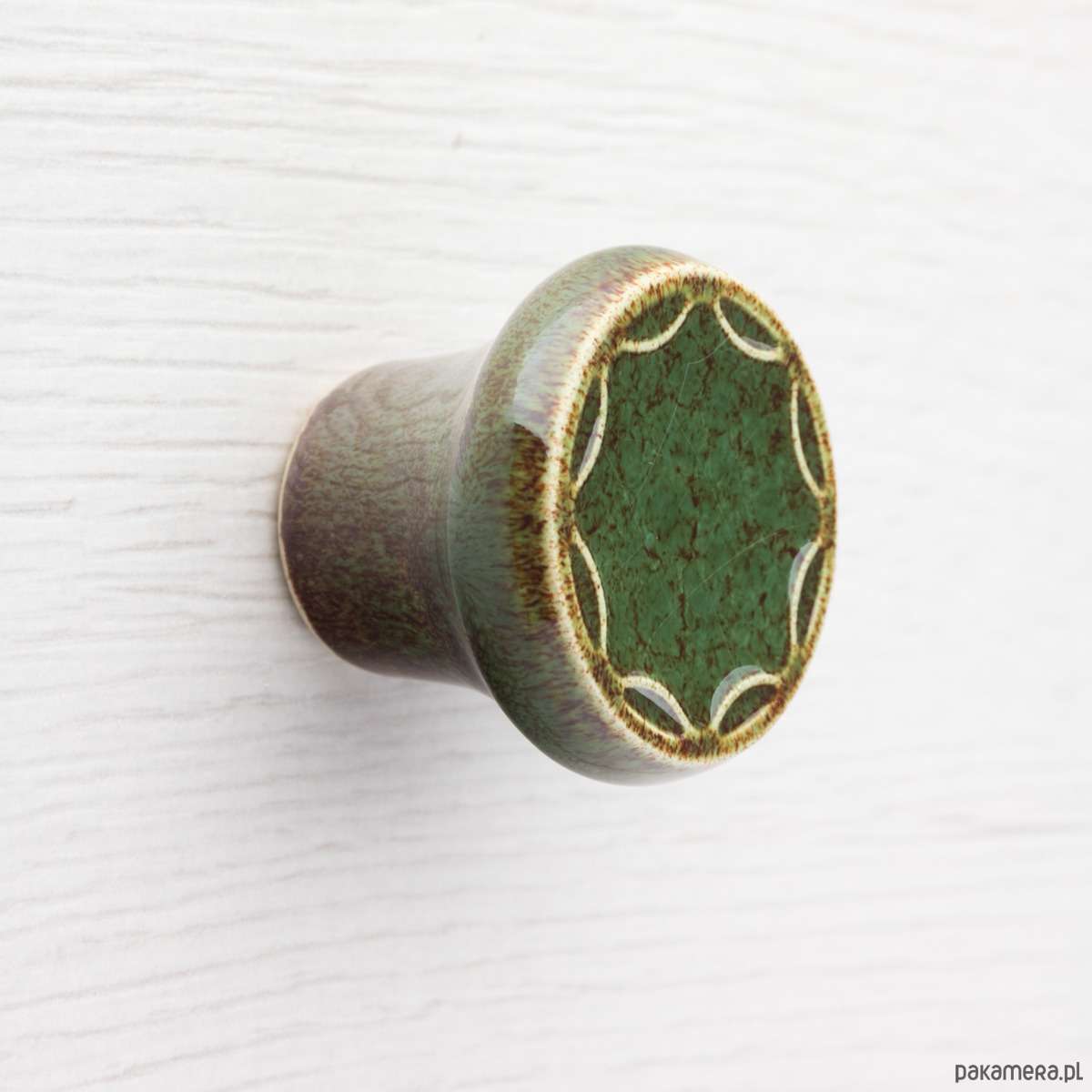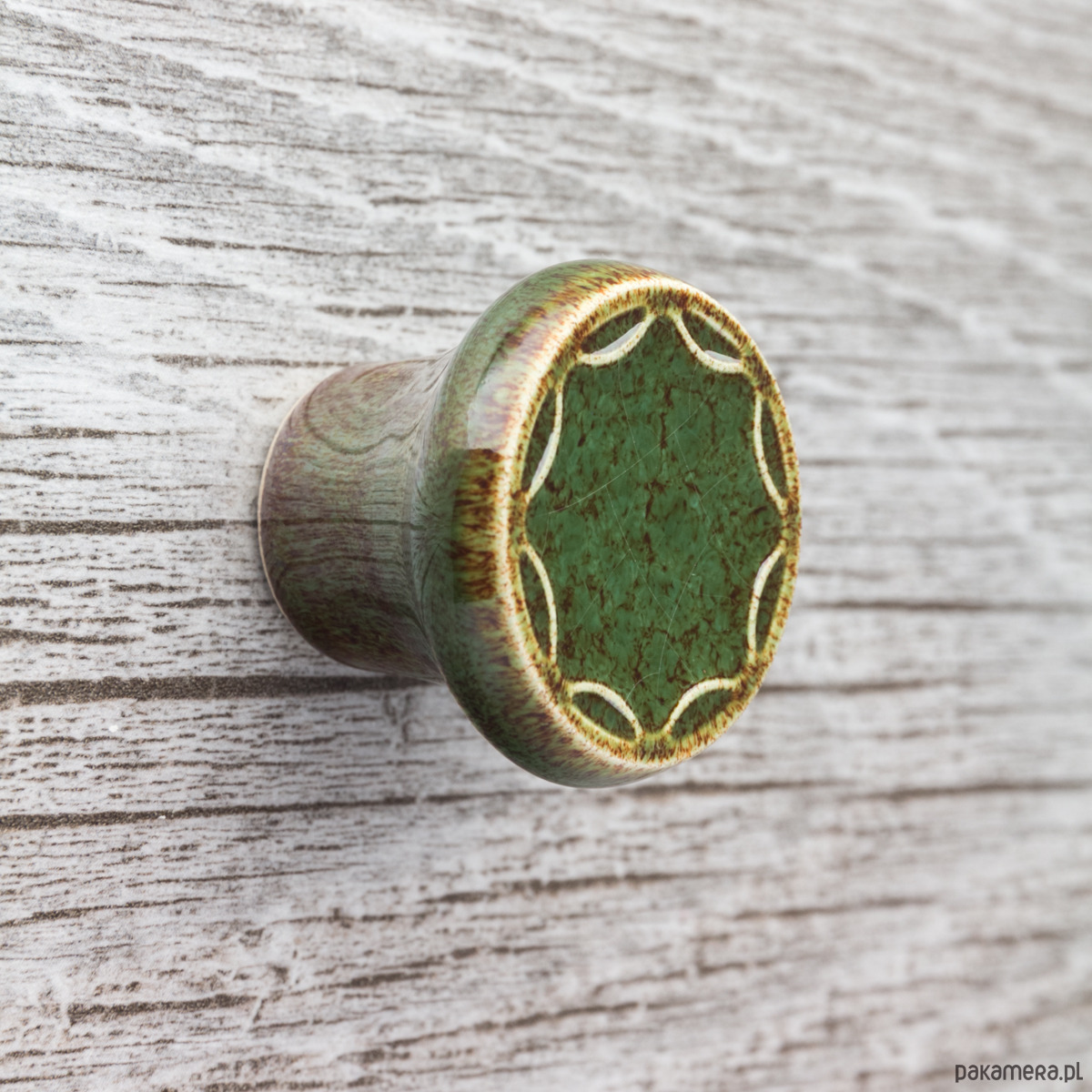 Ceramiczna gałka do mebli zielono-brązowa, wz.5