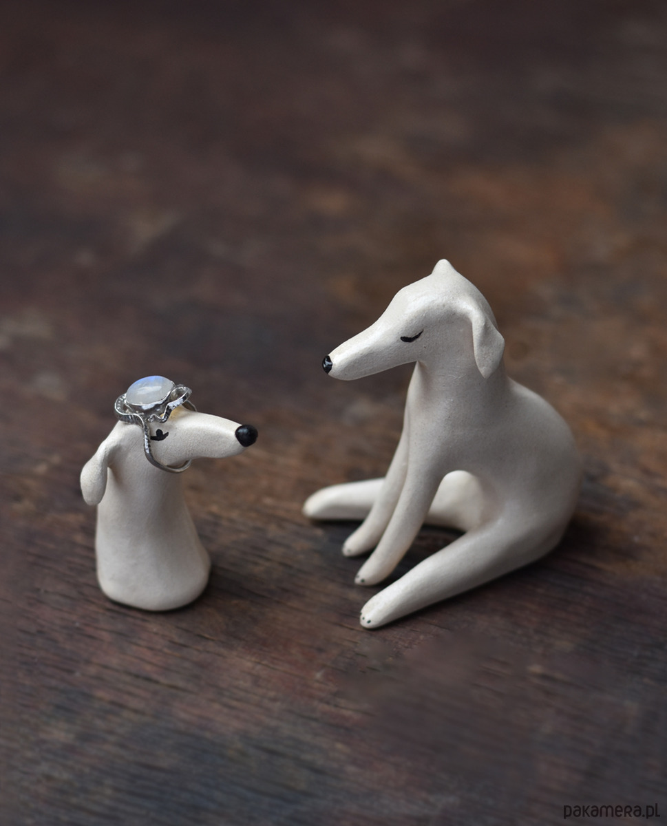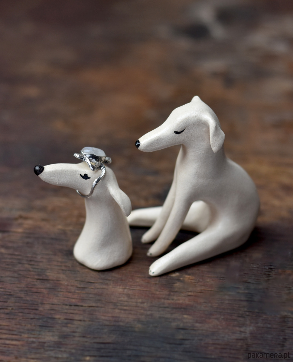 Ceramiczna głowa charta na pierścionek