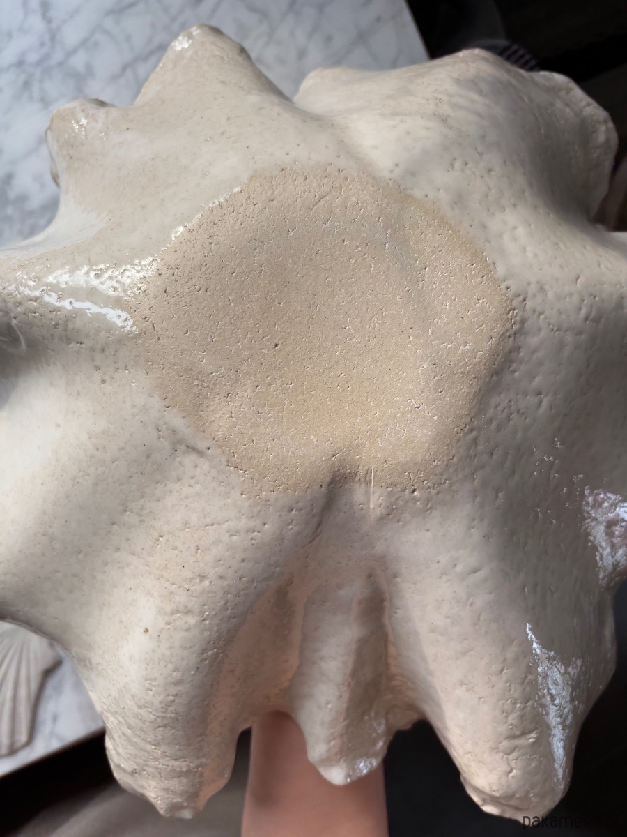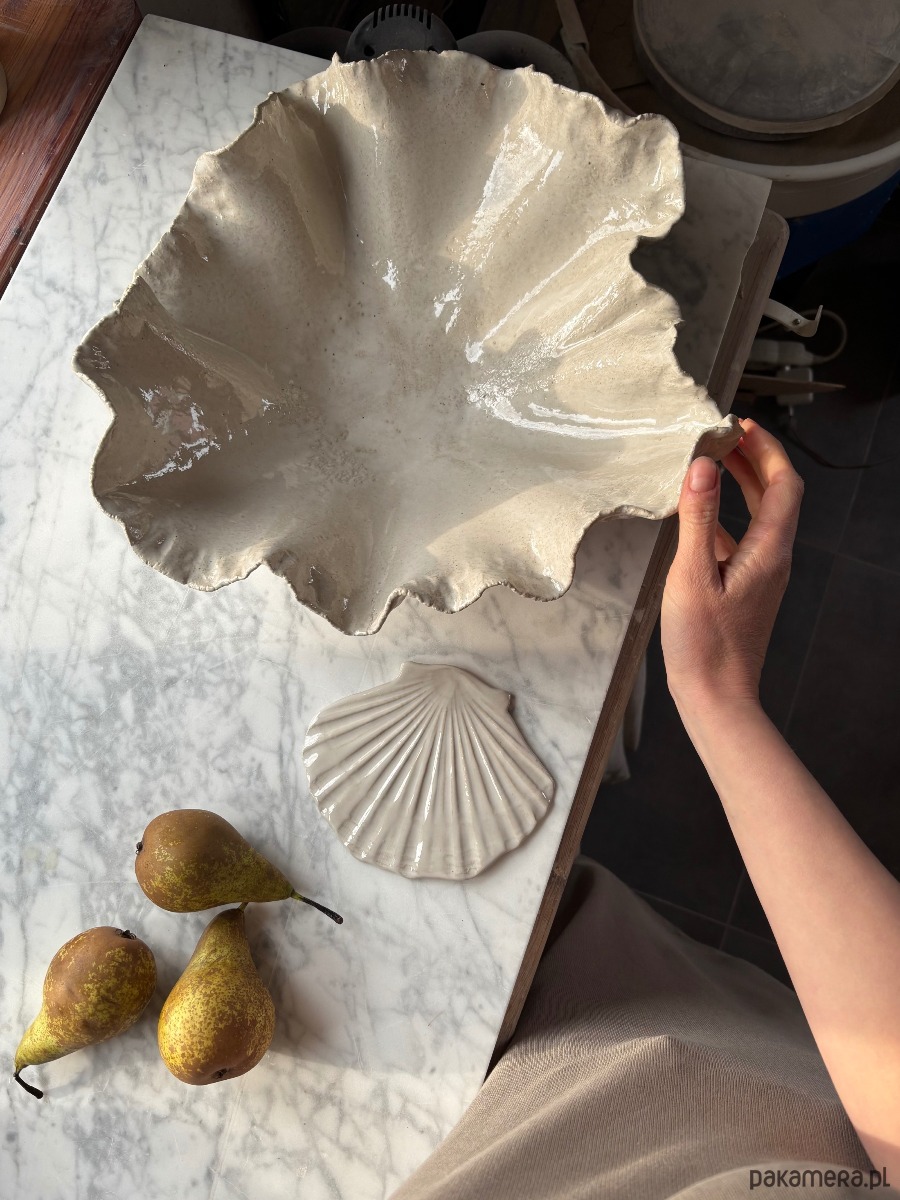Do misy w prezencie dodaję płaską ceramiczną muszlę, która może podłużyć jako talerzyk na przekąski, podstawkę pod łyżkę do gotowanie, czy jako talerzyk na drobiazgi.