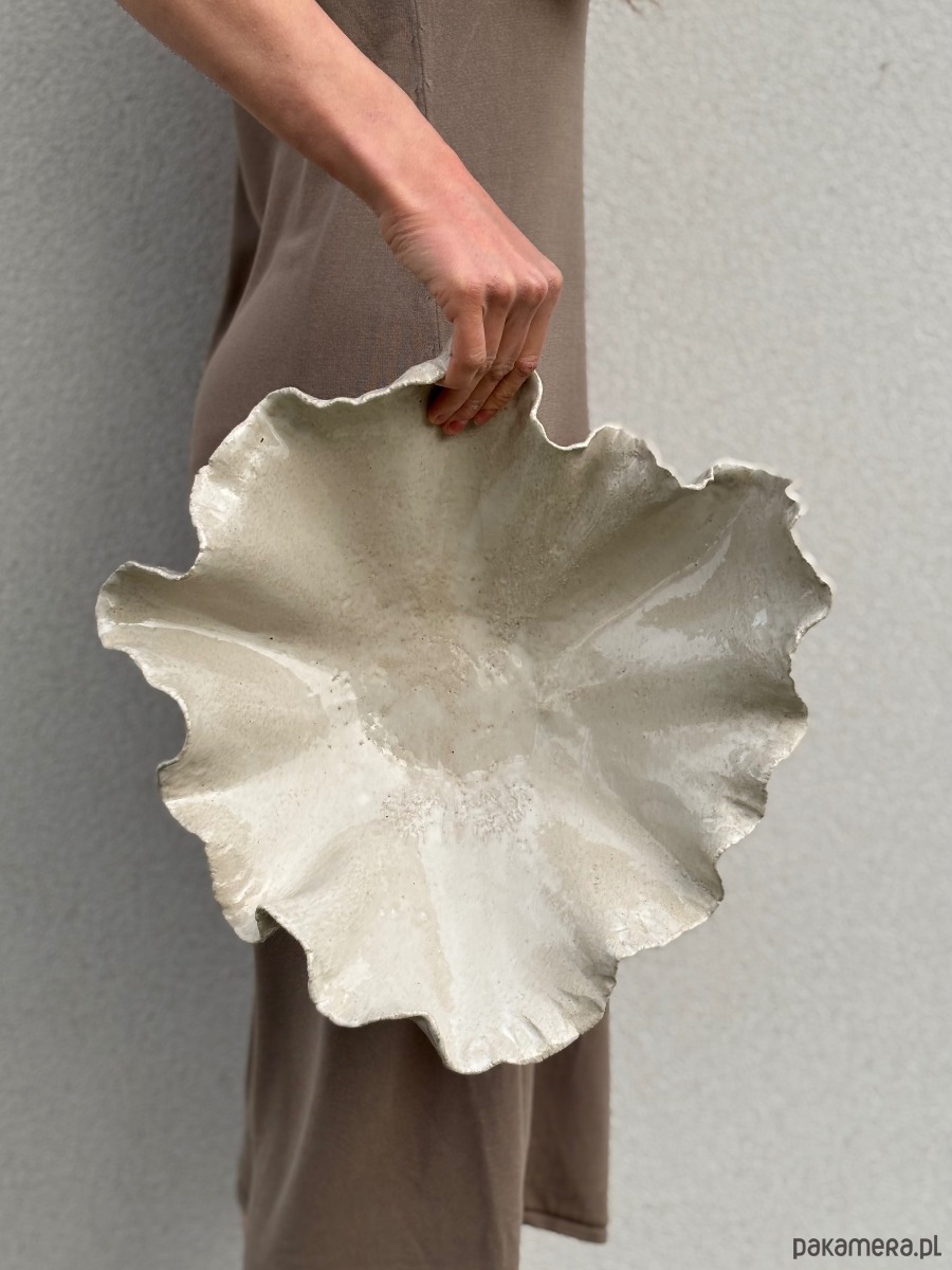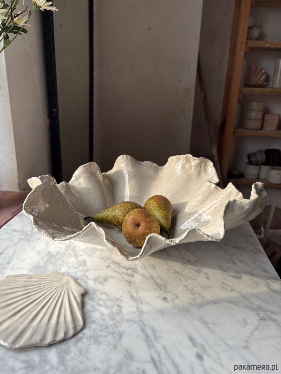 Ceramiczna unikatowa misa o organicznym kształcie w stylu modern farmhouse, idealna na owoce, sałaty, przekąski, lub jako element dekoracyjny przestrzeni.