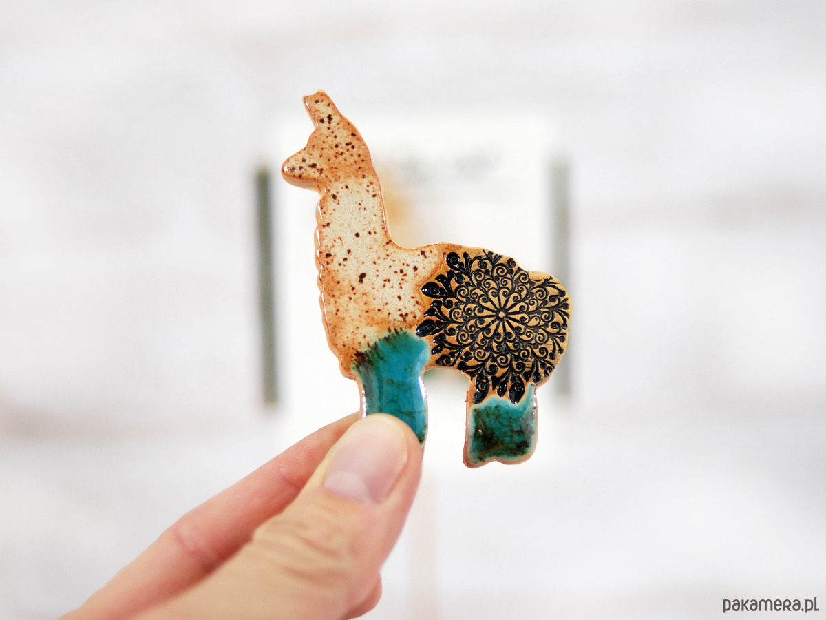 Ceramiczna lama - magnes, ozdoba na lodówkę