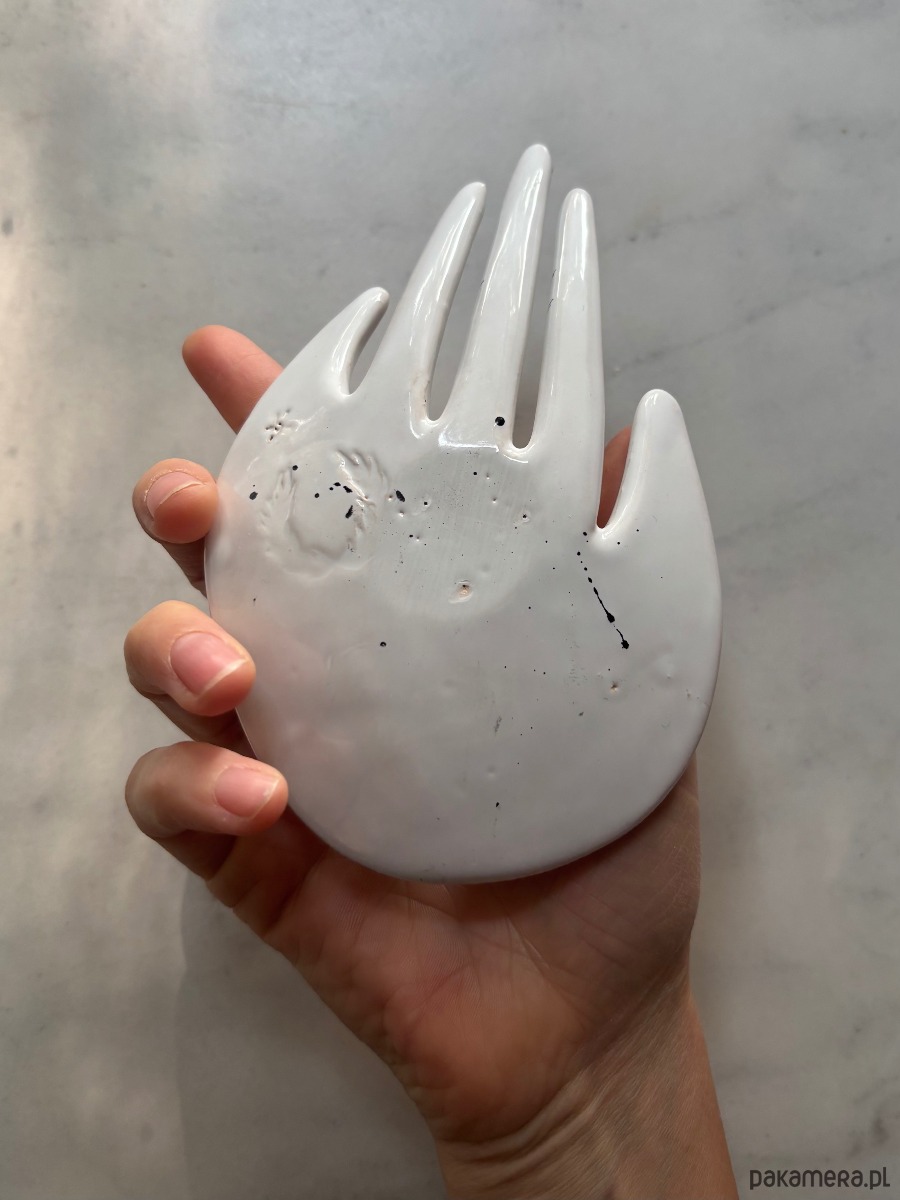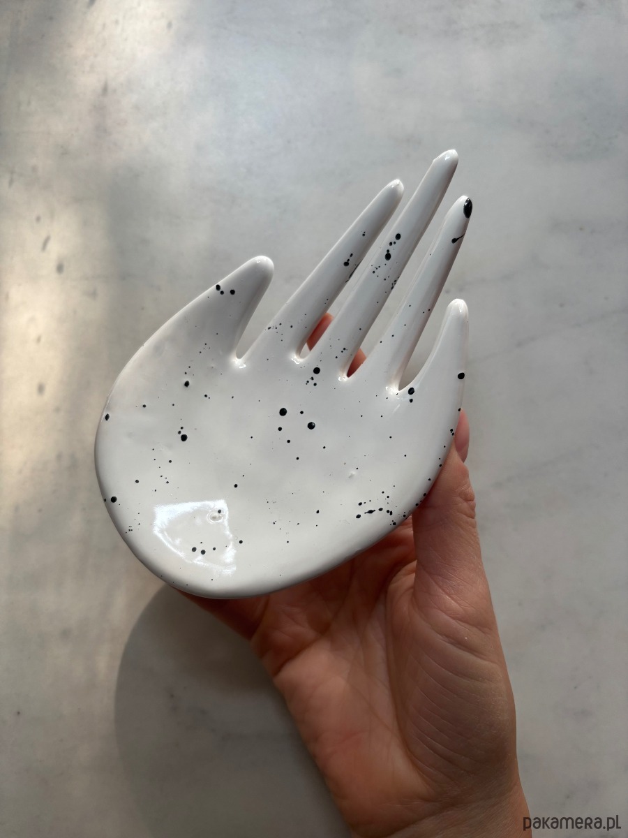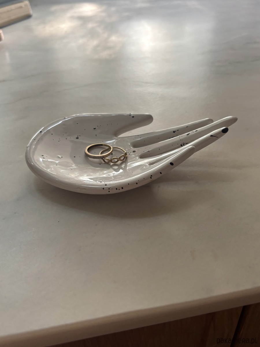 Ceramiczna forma w kształcie dłoni – ręcznie lepiona i szkliwiona w pracowni Maison Fragile. Wyjątkowa, autorska forma, idealna jako podstawka na biżuterię, świeczkę tealight lub drobne skarby, które chcesz mieć zawsze pod ręką.